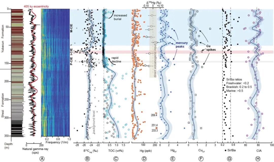 万德剖面钻孔沉积地球化学记录对CAMP超级火山的响应。