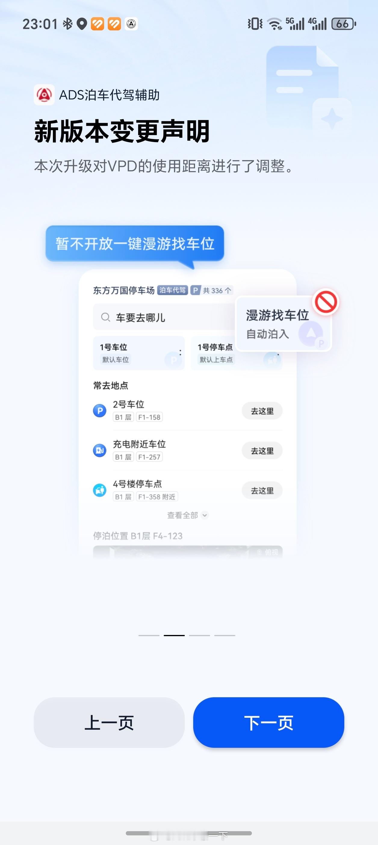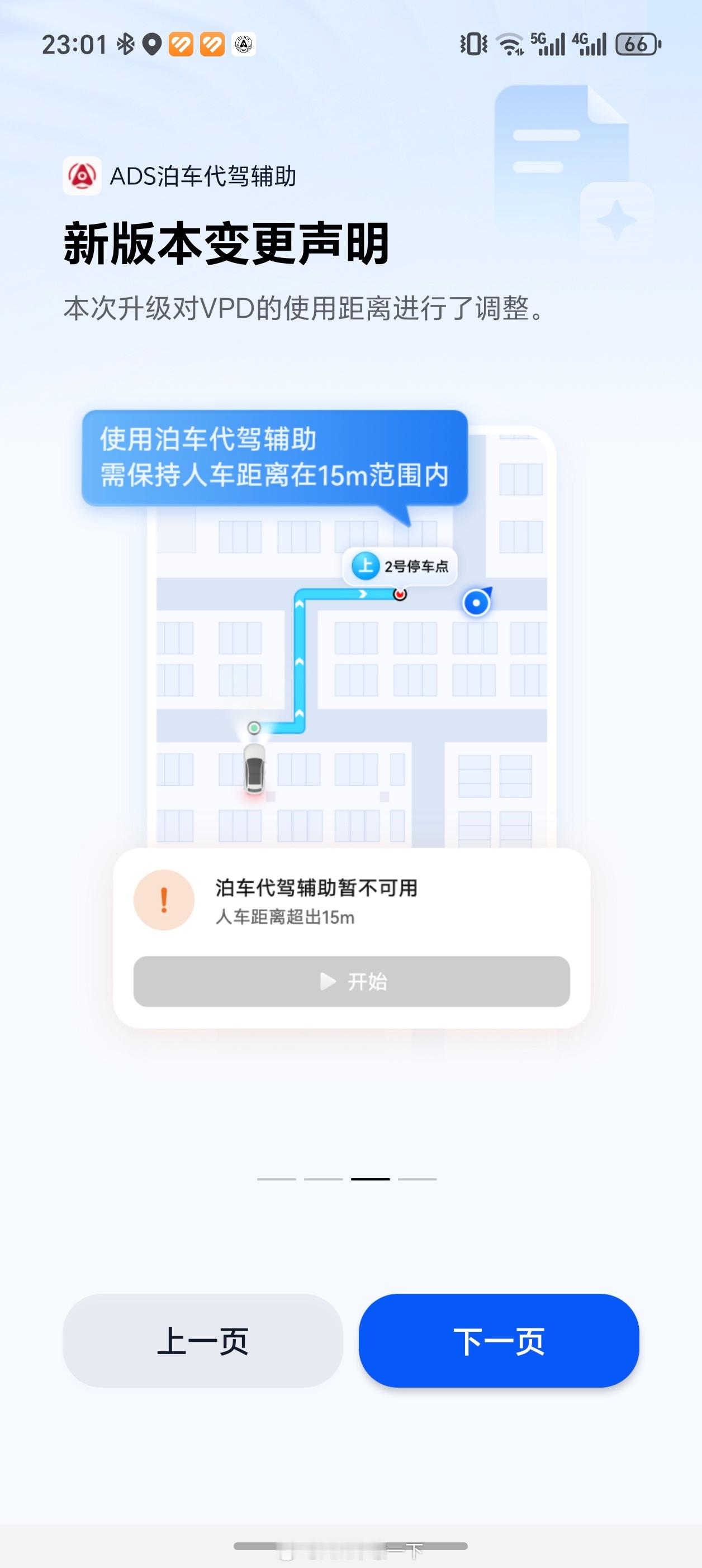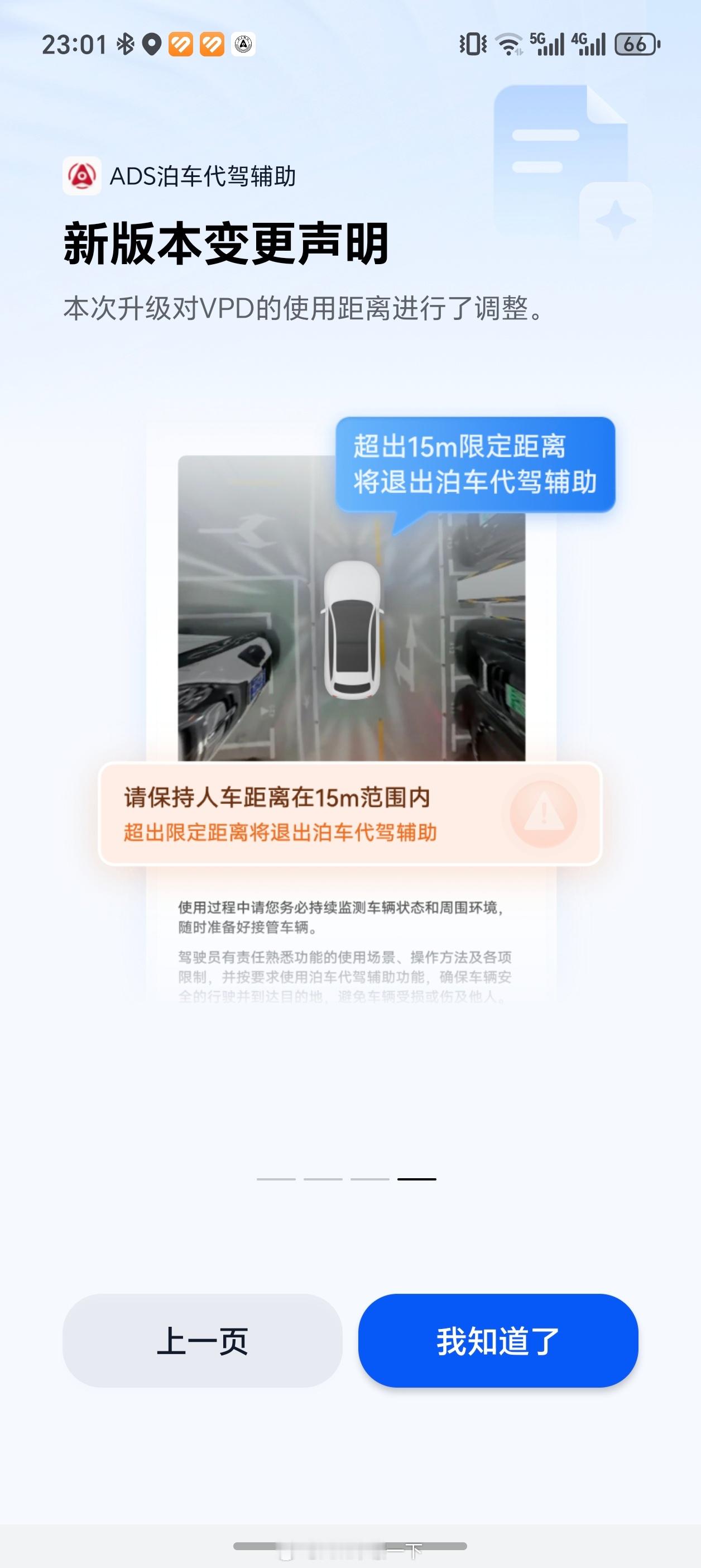 升级华为乾崑ADS4.1后,在泊车代驾beta界面里会显示变化的详情:不支持跨楼层、不支持一键漫游找车位、人车距离不超过15米,这个功能我用的不多,不过有时候在电梯上人多的时候就想用,但那时候距离应该是超过15米的