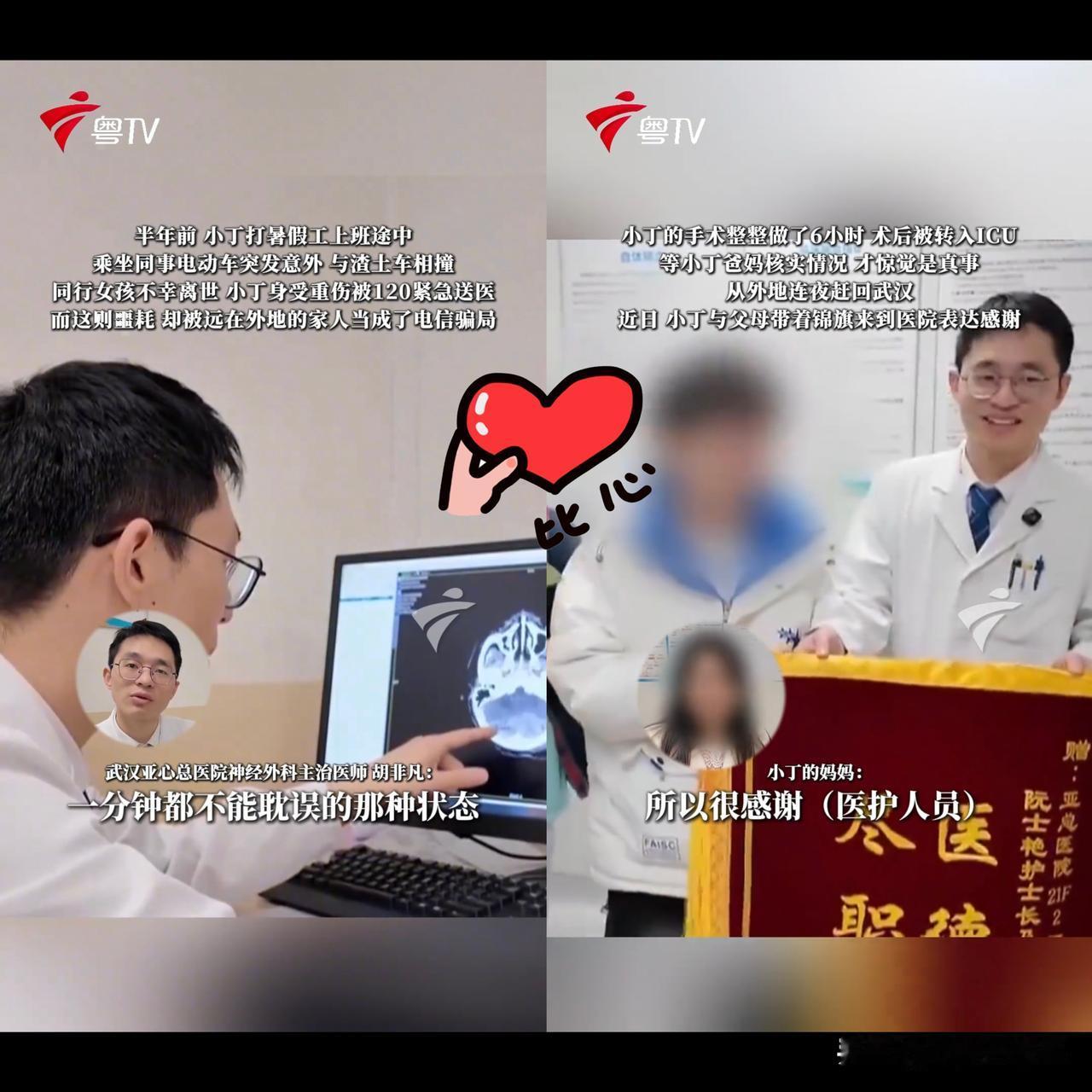 血压骤降、瞳孔散大,医生下了病危通知,父母却在电话里怒吼:“骗子!我儿子好好的!” 这不是电影,是半年前武汉真实发生的生死时速。 大学生小丁暑假打工,坐电动车被渣土车撞飞,同行女孩当场离世,他被送进医院时,已经命悬一线。医生说,必须立刻手术,晚一分钟都可能救不回来。 可当医院和交警疯狂联系他父母时,得到的却是一次次挂断和谩骂。 “我儿子好好上学,怎么可能车祸?你们这些骗子!” 一边是随时可能停止的心跳,一边是被诈骗吓怕了、死活不信的家属。手术签字卡壳,时间在一秒秒吞噬生命。 最终,医院总值班顶着巨大风险,破例签字,打开绿色通道,6小时手术,硬生生把他从鬼门关抢了回来。 如今小丁康复,带着锦旗回院谢恩。 这件事,看得人心里又酸又堵。 反诈防到不敢信噩耗,是时代的无奈; 医生敢担责、敢破例救人,是人性的光。 假如接到“家人出事”的陌生电话,别急着挂,先打110、打医院官方电话核实。别让反诈,变成误了救命的“反命”。