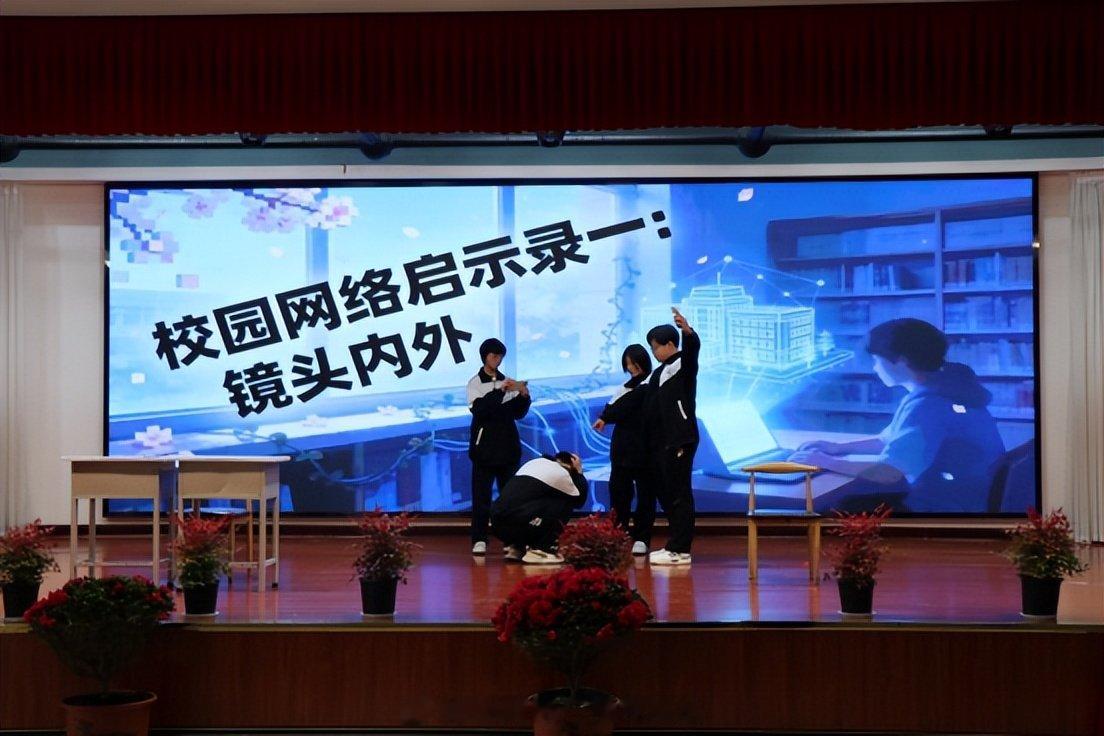 活动在学生们自编自导自演的网络情景短剧中拉开序幕,《镜头内外》聚焦校园网络暴力与隐私保护,《无限“倍”投》揭示网络赌博危害,《墙外“灯塔”》警示非法翻墙与信息渗透风险。魏县公安局网安大队民警结合情景剧情节与真实案例,为同学们上了一堂题为《网络“法”课,护你前行》的普法课。互动环节中,围绕网络安全常识、法律法规等内容,开展了《网络卫士大挑战》知识竞答,用轻松活泼的形式提升学生网络安全意识和法治素养。