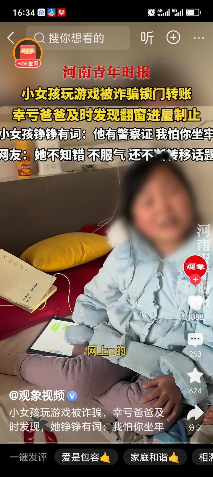 女孩玩游戏被诈骗反锁门转账,被爸爸制止,她还铮铮有词说:他有警察证,怕你坐牢! 这个故事背后,折射出当下青少年的一些现实困境,也让人不禁深思:在虚拟世界的诱惑与风险面前,我们到底该如何保护自己?尤其是那些年少轻狂、尚未成熟的心灵,面对网络诈骗、虚假承诺时,常常会因为一时的冲动而陷入无法挽回的困境。 女孩玩游戏被诈骗,反锁门转账的情节,令人震惊。这不仅仅是一起普通的网络诈骗,更是一场关于信任与警惕的警钟。诈骗者利用“游戏成瘾”或“虚拟情感”制造陷阱,让人心甘情愿地付出所有。而女孩的反应——还铮铮有词说:“他有警察证,怕你坐牢!”——更是让人心疼,也让人反思:在信息爆炸、虚实难辨的时代,青少年的判断力究竟在哪个点上出了问题? 父亲的制止,代表着成年人对孩子的保护与担忧,但同时也暴露出家庭教育中可能存在的沟通鸿沟。孩子的“铮铮有词”,反映出她的无知与冲动,也提醒我们:在网络世界中,孩子们缺乏的,不仅是防骗的知识,更是对风险的认知和自我保护的意识。 这件事告诉我们,青少年的网络安全教育,绝不能只靠家长一方的“防守”,更需要学校、社会、甚至整个家庭共同努力。我们要教会他们如何辨别虚假信息,如何在遇到危险时保持冷静,如何用正确的价值观去面对诱惑。更重要的是,要让他们明白:真正的“警察证”不是虚假的“警察”身份,而是内心的警觉和理智。 同时,也要反思:当“警察证”变成“威胁”的时候,青少年的心理会产生怎样的反应?他们会不会觉得,自己被“监控”得太紧,反而更容易产生逆反心理?家庭教育和社会引导,必须找到一个平衡点,让孩子在成长中学会自我保护,也学会理性应对各种诱惑。 这个故事让我们看到,青少年的世界比我们想象的要复杂得多。作为家长、老师、社会的一员,我们需要用更多的耐心和智慧,去搭建一座桥梁,让孩子在虚拟与现实之间,找到一条安全、健康的成长路径。毕竟,保护他们,不只是阻止他们的冲动,更是引导他们学会如何在这个充满陷阱的世界里,坚强、聪明地前行。 你怎么看?你身边有没有类似的故事?留言告诉我,让我们一起为青少年的安全成长出谋划策!小孩诈骗 游戏诈骗 儿童网络诈骗 游戏诱导诈骗