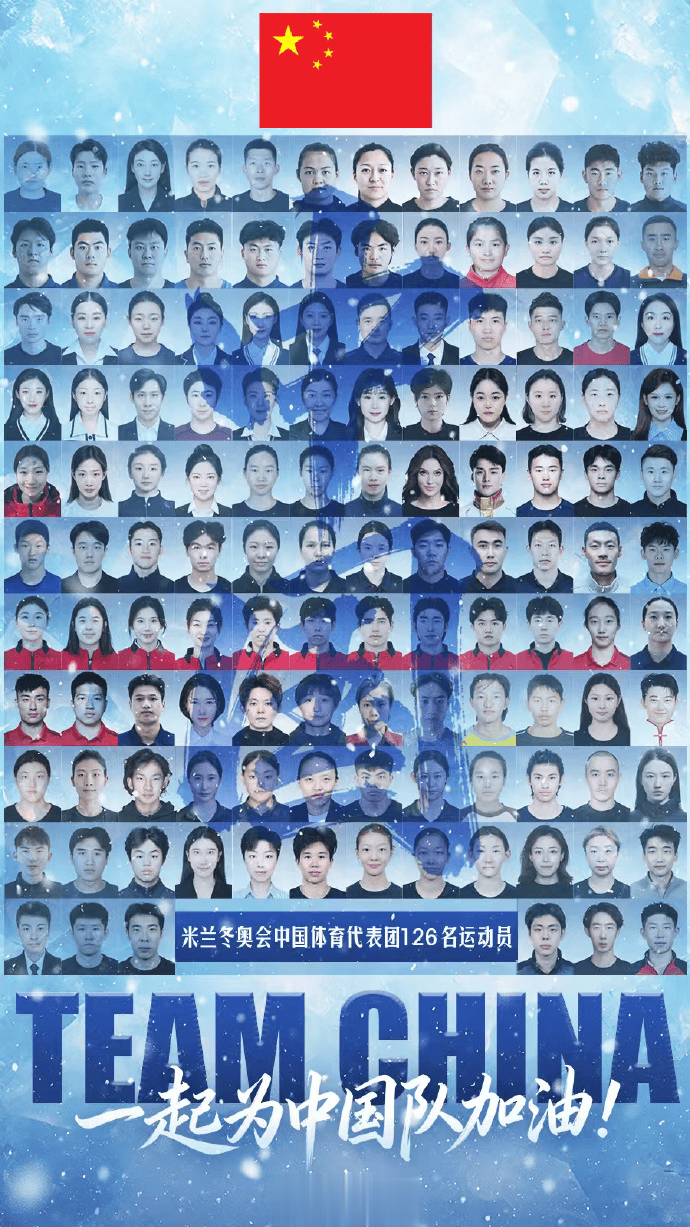 这张特殊的全家福由126名米兰冬奥会中国体育代表团运动员的证件照精心拼贴而成,共同组成了醒目的中国红背景图案,象征着中国冰雪力量的团结与激情。