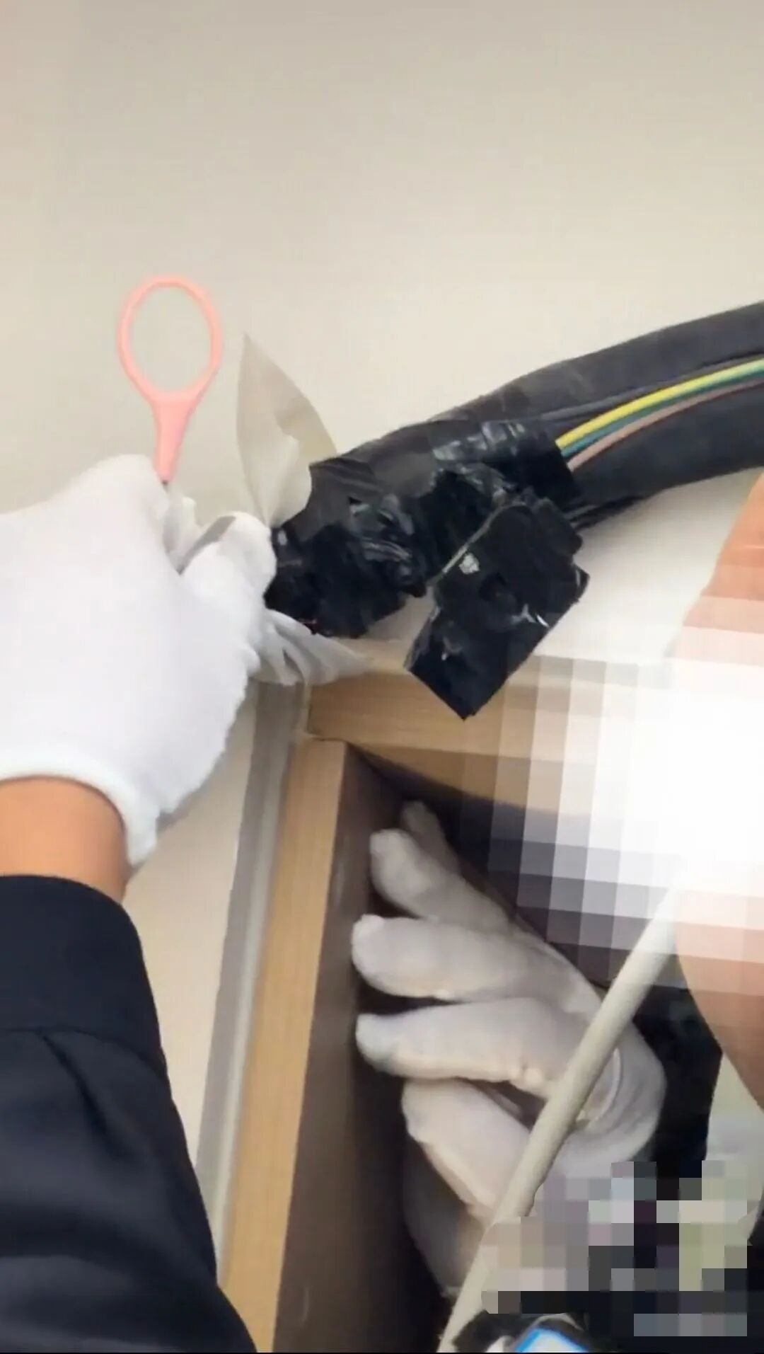 视频显示,民警到房间后,对空调管道进行了拆除,确认一个摄像头就藏在其中。