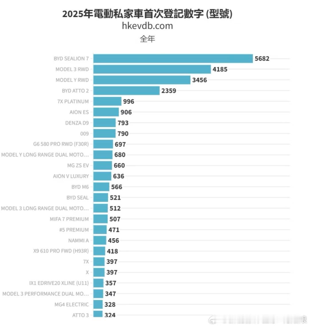 香港2025电车销量Top10,比亚迪占3席!海狮7单车型断层第一,ATTO 2