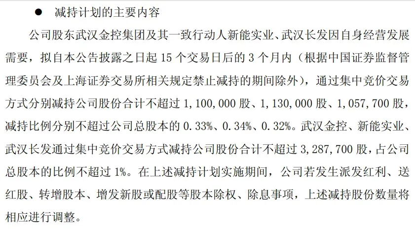 2月3日晚间,长江通信(600345)公告,公司股东武汉金控集团及其一致行动人新能实业、武汉长发拟15个交易日后的3个月内,通过集中竞价交易方式减持公司股份合计不超过328.77万股,占公司总股本的比例不超过1%。