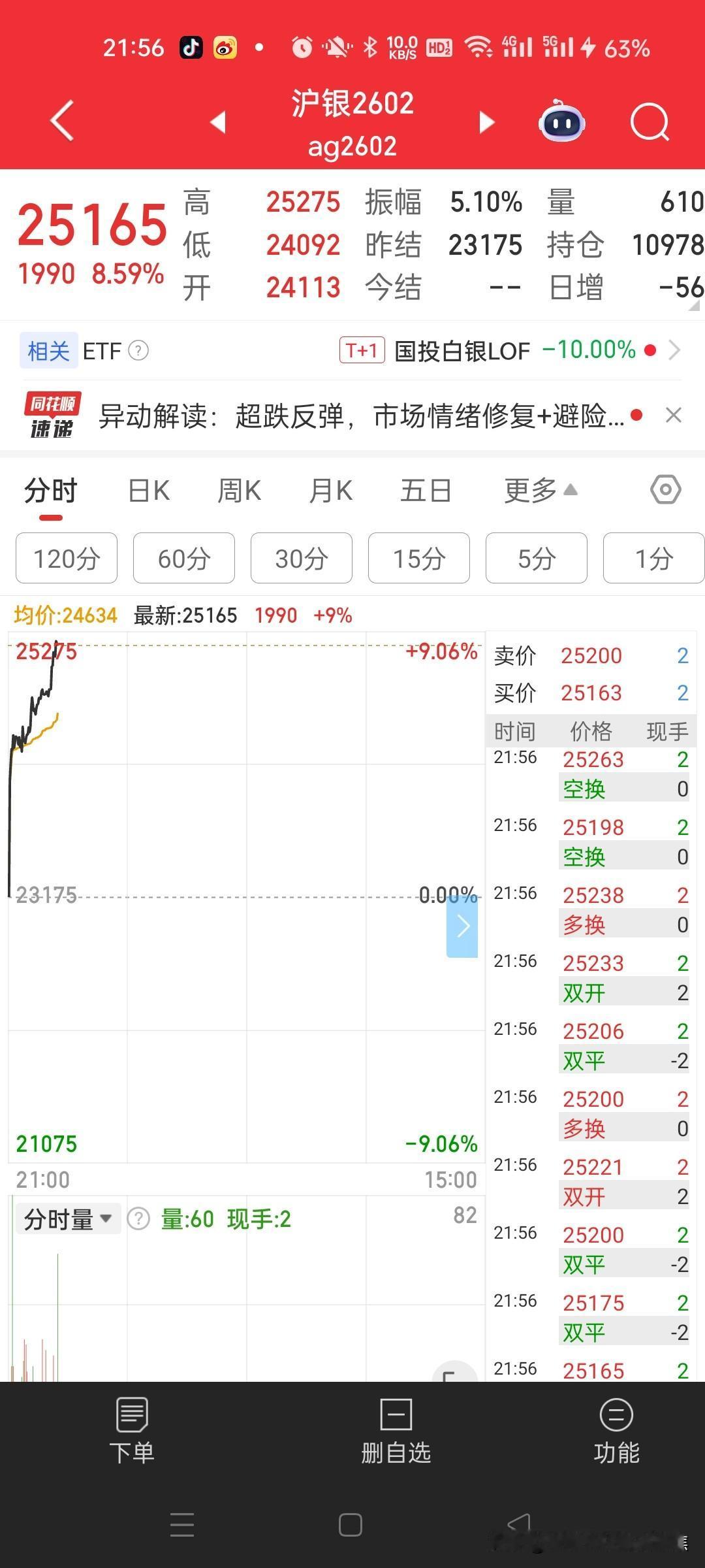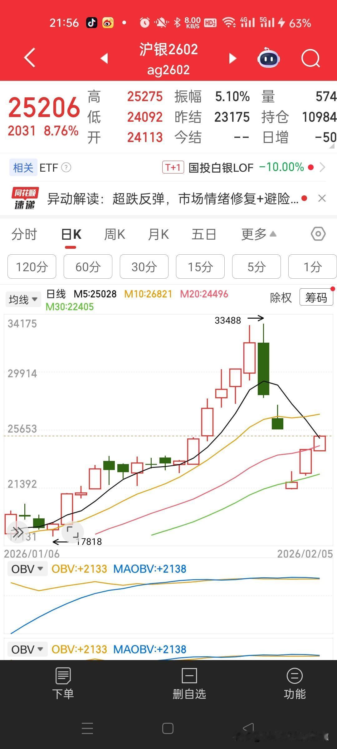 沪银2602合约大涨9%,银子又疯了 沪银2602合约(2026年2月到期的上海期货交易所白银期货主力合约)在2月4日早盘开盘后大幅上涨,日内涨幅一度突破11%,创下极端波动纪录,引发市场对白银价格暴涨暴跌的高度关注。@每日经济新闻2124每日经济新闻 🔥 一、最新行情表现 价格涨幅创纪录 截至2月4日,沪银2602主力合约单日涨幅超11%,最高报23109元/千克;同时国际现货白银价格突破90美元/盎司,日内涨幅超6%。这一涨幅远超用户查询中提到的"8%"(实际8%为早盘开盘初值),且48小时内振幅高达40%,创1980年以来最极端波动。@中国商报2427 内外市场联动 国内外白银价格同步飙升,纽约期银日内涨超8%,现货白银重回90美元关口,与沪银形成共振。此外,黄金期货同步走强,沪金主力合约涨超6%,现货黄金重回5000美元/盎司大关。@21世纪经济...1516 🤔 二、上涨核心驱动因素 空头逼仓与流动性危机 沪银2602合约因交割月持仓量(24万手)远超库存(仅559吨),形成"货少钱多"格局,空头面临无货可交割困境,被迫平仓推升价格。叠加伦敦可交割白银库存降至十年最低(233吨),白银租赁利率飙升至7.48%,加剧流动性紧张。 工业需求与政策预期 光伏与新能源需求:白银在光伏电池(占全球需求55%)、新能源车(单车用银量为燃油车7倍)领域用量激增,2025年全球缺口达2700-3000吨;38 美联储降息预期:市场押注2026年再降息100基点,美元走弱降低无息资产持有成本,资金涌入贵金属避险。@吉华 地缘风险与超跌修复 委内瑞拉局势紧张、美国关键矿产清单纳入白银,触发避险买盘。此前1月30日白银闪崩36%,连续三日暴跌后引发技术性反弹,抄底资金集中入场。@丁一胡同3943 ⚠️ 三、市场风险与争议 极端波动风险 白银素有"魔鬼金属"之称,1月内经历"暴涨-闪崩-再暴涨": 12月29日:沪银2602合约单日振幅超12%,盘中从涨10%跳水至仅收涨0.51%;@梨视频 2月2日:沪银因交易所上调保证金曾跌停,年内累计涨幅从45%缩水。@海大lym 监管干预降温 上期所月内三次上调保证金至17%,扩涨跌停板至15%,但仍难抑投机。2月3日上海黄金交易所紧急下调白银T+D合约保证金至23%,试图缓解流动性压力。2144 机构多空分歧 看多方(如法国巴黎银行):认为供需缺口难逆转,看涨至100美元/盎司; 看空方(如高盛):警告RSI指标达93.86(1980年以来最高超买值),短期或回调20%。50 💡 四、对投资者的建议 避免追高杠杆操作 普通投资者需警惕期货及期权的高波动风险(如沪银期权单日涨幅曾达953%),优先选择银行银条(溢价≤5%)或低溢价ETF。38 关注核心变量 工业替代技术:光伏铜浆技术若突破,2026年或削减800吨白银需求; 政策节点:美国232矿产调查结果(1月17日公布)、美联储降息路径。50 当前白银行情本质是"低库存逼仓+工业刚需+投机泡沫"的多重博弈,建议投资者严守仓位≤流动资产5% 的风控底线,利用回调轻仓布局,避免裸空或重仓追涨。@7万小时17...2226