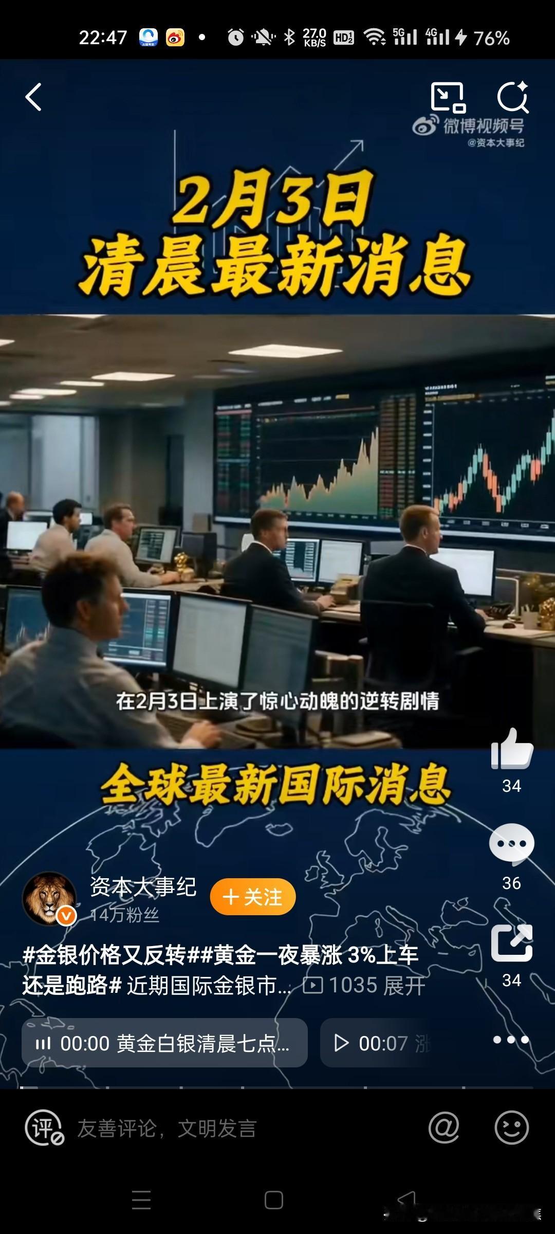 金子疯了,银子更疯狂了。国际金银价格“V型”反弹,现货黄金创2009年以来最大单日涨幅重回5000美元 国际金银市场刚刚经历了一场史诗级波动,现货黄金在2月3日单日暴涨超6%,创2009年以来最大涨幅,纽约期金价格强势重返5000美元/盎司关口,白银同步站上80美元,上演了一次惊心动魄的“V型”反转。@北京日报38红星新闻 一、核心事件与数据表现 历史性反弹幅度: 2月3日,现货黄金单日飙升289.6美元,涨幅超6%,创下2008年11月以来最大单日涨幅;纽约商品交易所黄金期货同步收涨6.19%,重返4970.5美元/盎司,隔夜交易中进一步突破5000美元。@许文臣126 白银期货日内涨幅一度达12%,报88.59美元/盎司,与黄金形成共振反弹。@看看新闻Kn...23 国内市场快速响应,沪金、沪银主力合约2月4日早盘分别跳涨超6%和8%。@每日经济新闻58 暴跌背景下的反转: 此次反弹发生在此前连续三日暴跌之后。1月31日,现货黄金单日跌幅高达12%,触及4682美元低点;白银累计跌幅达40%,市场一度陷入恐慌。@央视新闻4154 技术面严重超卖(黄金回调21.28%、白银超40%)触发空头回补和抄底资金涌入,成交量较平日放大45%-62%。每日经济新闻每日经济新闻央视新闻在圈里收瓜 二、关键驱动因素 市场情绪与资金流动: 避险需求回温:中东冲突升级(俄罗斯袭击乌克兰能源设施)及地缘不确定性推升避险情绪。@红星新闻 美元指数走软:美元回落至108.2附近,降低非美元货币持有者的购金成本。118 技术性修复:杠杆资金平仓引发的抛压缓解后,投机性买盘和量化策略转向助推反弹。@罗白酱55 长期基本面支撑: 央行购金潮持续:全球央行2025年净购金超1100吨,中国连续14个月增持(2025年末储备达7415万盎司),形成“政策底”。@央视网15 降息预期未改:市场对美联储2026年降息3-4次的判断未动摇,实际利率下行预期降低黄金持有成本。1828 白银工业需求刚性:光伏、半导体等领域用银缺口扩大,2026年预估供需缺口达2.03亿盎司。3640罗白酱央视网资本大事纪木木很瘦丫 三、市场连锁反应 消费与投资市场两极分化: 金饰价格剧烈波动:周生生足金饰品报价单日跳涨102元至1600元/克,老凤祥、周大福跟涨,引发消费者排队抢购与观望情绪并存。@21世纪经济...1022 回收市场陷入停滞:杭州珠宝回收商因“早上收金、下午亏本”暂停业务,部分银行设置单日回购限额(如单笔10公斤以上大额赎回)。@浙江经视19 机构操作与散户行为: 专业投资者逢低布局:部分机构在4600美元附近进场,推动“深V”形态完成。8 散户追涨风险凸显:社交平台涌现“抄底”讨论,但高溢价金饰(回收价较售价低30%)导致短期套利困难。42236新浪热点鍋盖頭司令 四、趋势预判与风险预警 机构中长期展望: 高盛、摩根大通等投行上调2026年底金价目标至5400-6300美元,核心逻辑为央行购金、去美元化及地缘风险。2428 白银因金融属性弱于黄金且波动率更高,短期或承压(TD Securities预测均价回落至40美元)。5540 短期风险提示: 波动率飙升:黄金30日历史波动率达44%,超过比特币的39%,日内±3%-5%波动或成常态。55 政策敏感期:美联储新主席提名(凯文·沃什)听证会临近,若释放鹰派信号可能触发新一轮回调。3755 杠杆风险警示:白银5%价格波动可摧毁20倍杠杆本金,期货市场爆仓账户占比达70%。34资本大事纪 五、普通投资者操作建议 资产配置比例:黄金占流动资产不宜超10%,白银控制在5%以内,优先选择银行金条、黄金ETF(费率≤0.5%)等低溢价渠道。221834 交易策略:避免追涨杀跌,分批布局严控仓位,设置止损线应对震荡。1855 警惕情绪化操作:当前市场呈现“风险资产”特征,需区分投资需求与消费需求,金饰高溢价不具备短期套利空间。822 此轮“V型”反转本质是技术面、情绪面与长期逻辑的激烈碰撞,在美元信用重塑周期中,金银的避险属性仍具战略价值,但普通投资者需以防御姿态应对高波动市场。2838 黄金行情价格 黄金白银价格 黄金大盘价行情 黄金售卖价格 黄金价 黄金价格变迁 贵金属行情