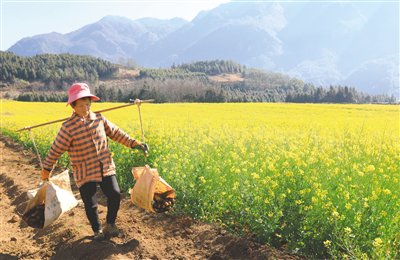 2月4日,农民在云南省腾冲市明光镇凤凰村凤凰山挑运刚采挖的山药。2月4日是二十四节气的立春,各地农民及时开展农事,忙碌在希望的田野上。新华社发