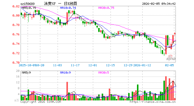 2月5日,消费ETF南方(159689)开盘涨0.26%,报0.760元。消费ETF南方(159689)重仓股方面,伊利股份开盘涨0.33%,贵州茅台跌0.33%,牧原股份跌0.04%,五粮液跌0.57%,温氏股份跌0.31%,泸州老窖跌0.71%,山西汾酒跌0.29%,海天味业跌0.19%,东鹏饮料涨0.03%,海大集团跌0.02%。