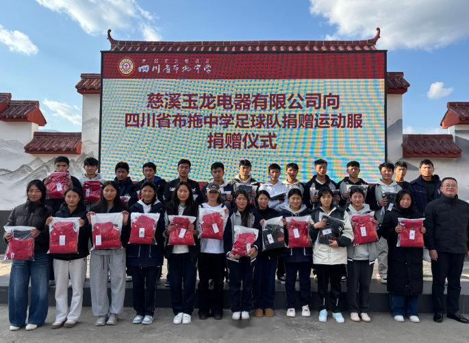 宁波爱心企业捐赠训练服助力学子足球梦 近 日 , 慈 溪 玉 龙 电 器 有 限 公 司 向 四 川 省 布 拖 中 学 足 球 队 定 向 捐 赠 3 5 套 男 女 足 球 训 练 服 。 该 公 司 总 经 理 胡 旭 圆 得 知 布 拖 中 学 女 足 获 凉 山 州 第 4 1 届 州 运 会 亚 军 却 缺 训 练 服 后 , 即 刻 联 系 校 方 促 成 捐 赠 。 布 拖 中 学 师 生 对 此 表 示 感 谢 。 胡 旭 圆 热 衷 公 益 , 此 前 还 赞 助 球 赛 、 翻 修 操 场 等 , 后 续 还 将 为 该 校 捐 赠 取 暖 设 备 及 赛 事 资 金 , 助 力 球 队 再 创 佳 绩 。