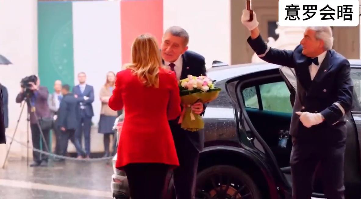 捷克总理冒雨见意大利女总理,还准备了一束鲜花,好绅士哟!2月4日捷克总统乘车去见梅洛尼,下车时手拿鲜花,还有人为他撑雨伞。 尽管下着雨,地面湿漉漉的,但总理先生手拿鲜花送给梅洛尼这一幕,真的好有男人应有的绅士范儿,不过梅洛尼什么也没准备,也就正常打招呼贴面礼。 看来国外的男人真的好贴心,和女士见面送鲜花,不管是见朋友还是见客户,寒暄时不至于冷场,还有女人都喜欢鲜花喜欢收礼物,捷克总理要是有求于意大利总理,第一印象很重要哟!