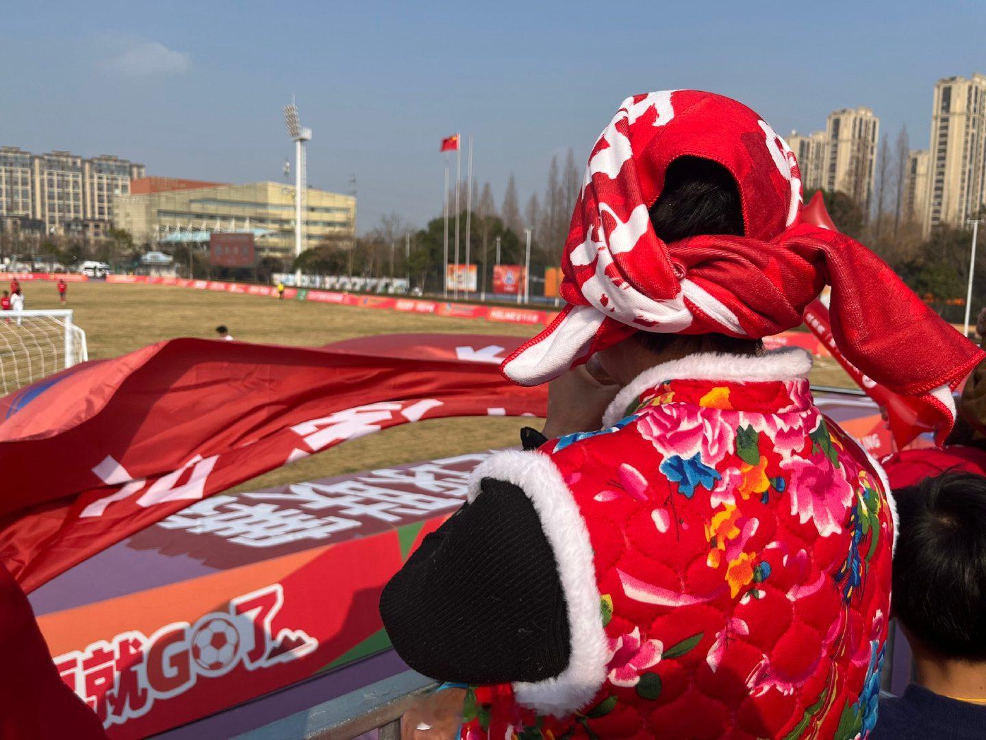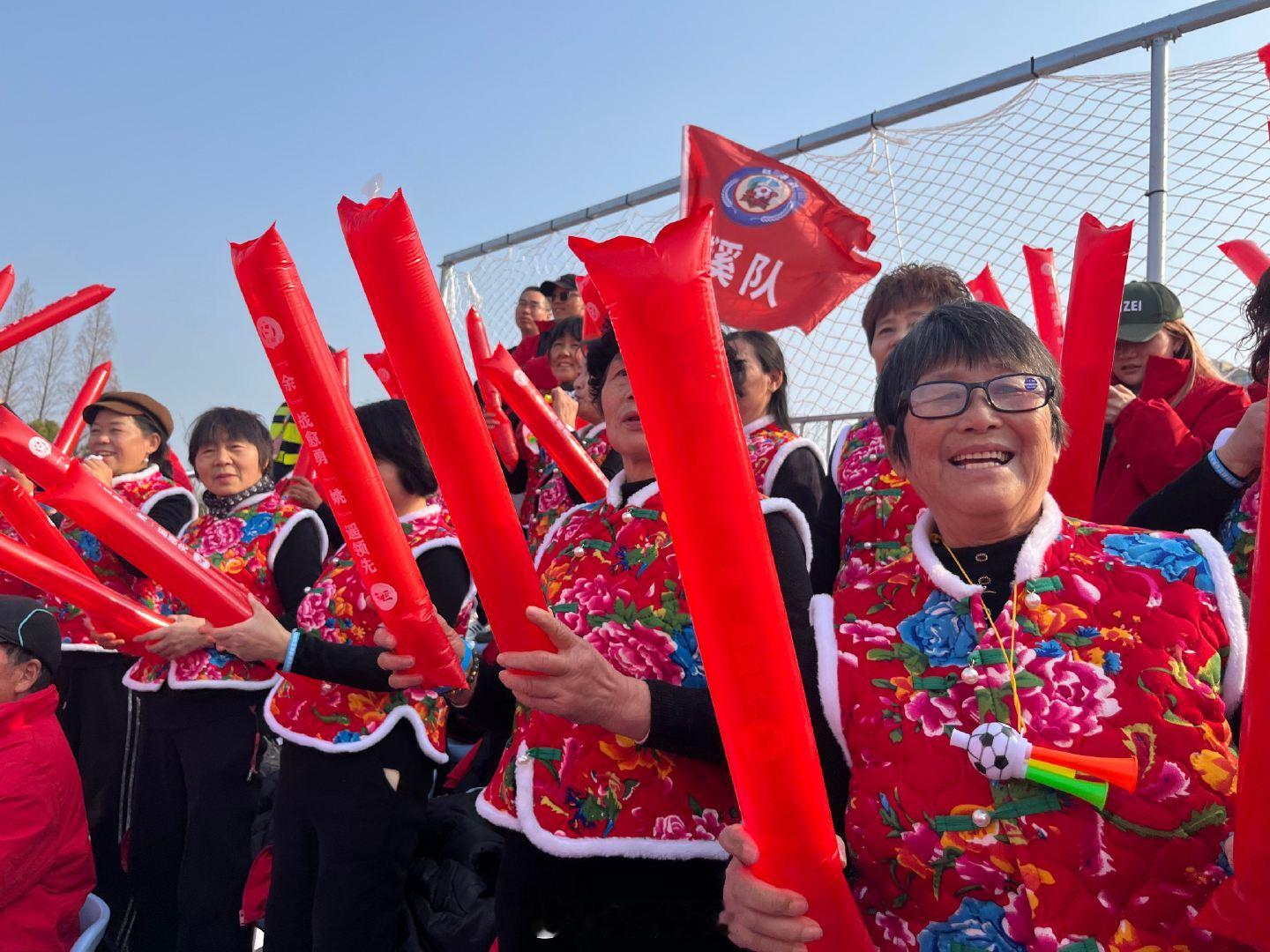 宁波绿茵场上的花棉袄拉拉队点燃赛场激情 近日,2026宁波城市足球联赛小组赛第三轮在余姚全民健身中心开赛。赛场上球员奋力拼抢,看台上助威声高涨。其中,慈溪40多名年过花甲的“花棉袄”拉拉队格外吸睛,她们来自掌起老年大学舞蹈队,身着鲜艳花棉袄背心,敲洋鼓、喊口号为慈溪队助威。这抹冬日里的“花棉袄”红,既展现了老人们的活力,也诠释了对家乡球队的执着热爱,成为赛场独特风景线。