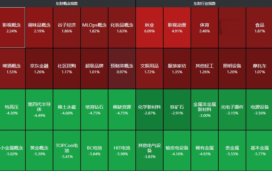 上证报中国证券网讯2月5日早盘,市场震荡调整,三大指数均跌超1%。截至午间收盘,沪指跌1.03%,深证成指跌1.81%,创业板指跌1.94%。盘面上看,大消费板块表现强势,食品饮料、零售、影视院线方向涨幅居前,横店影视6天5板,杭州解百2连板,安记食品等涨停。银行板块逆势走强,厦门银行涨超6%。下跌方面,基本金属、贵金属、铁矿石等板块跌幅靠前。