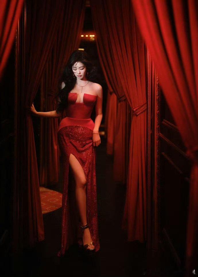 白鹿微博之夜盛典出图白鹿抹胸红裙高定白鹿微博之夜出图,风情摇曳,期待住和你的见面