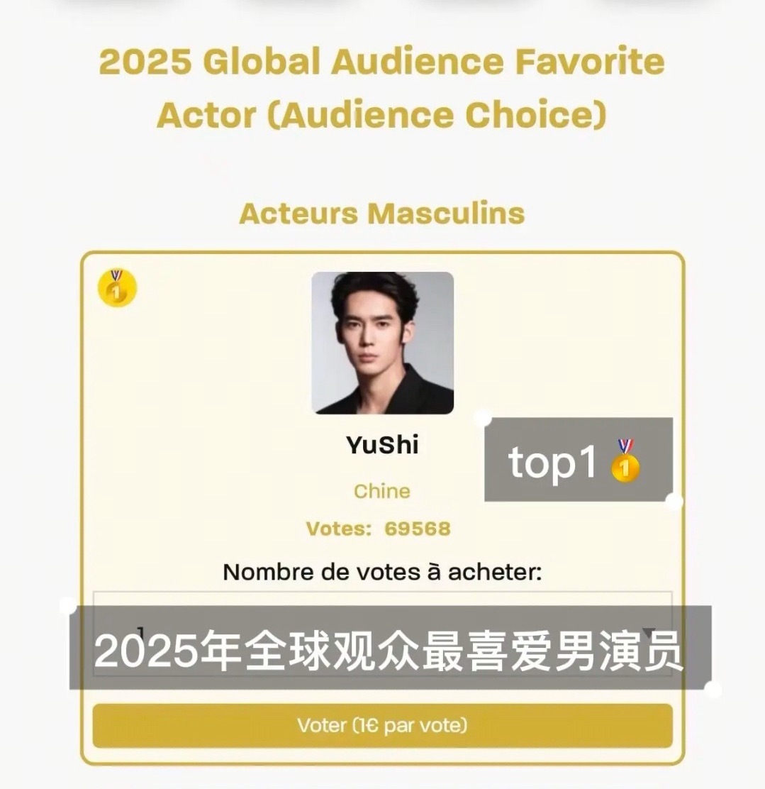于适获欧洲世界电影节全球观众最喜爱演员TOP1🏆含金量拉满的观众选择奖对标百花