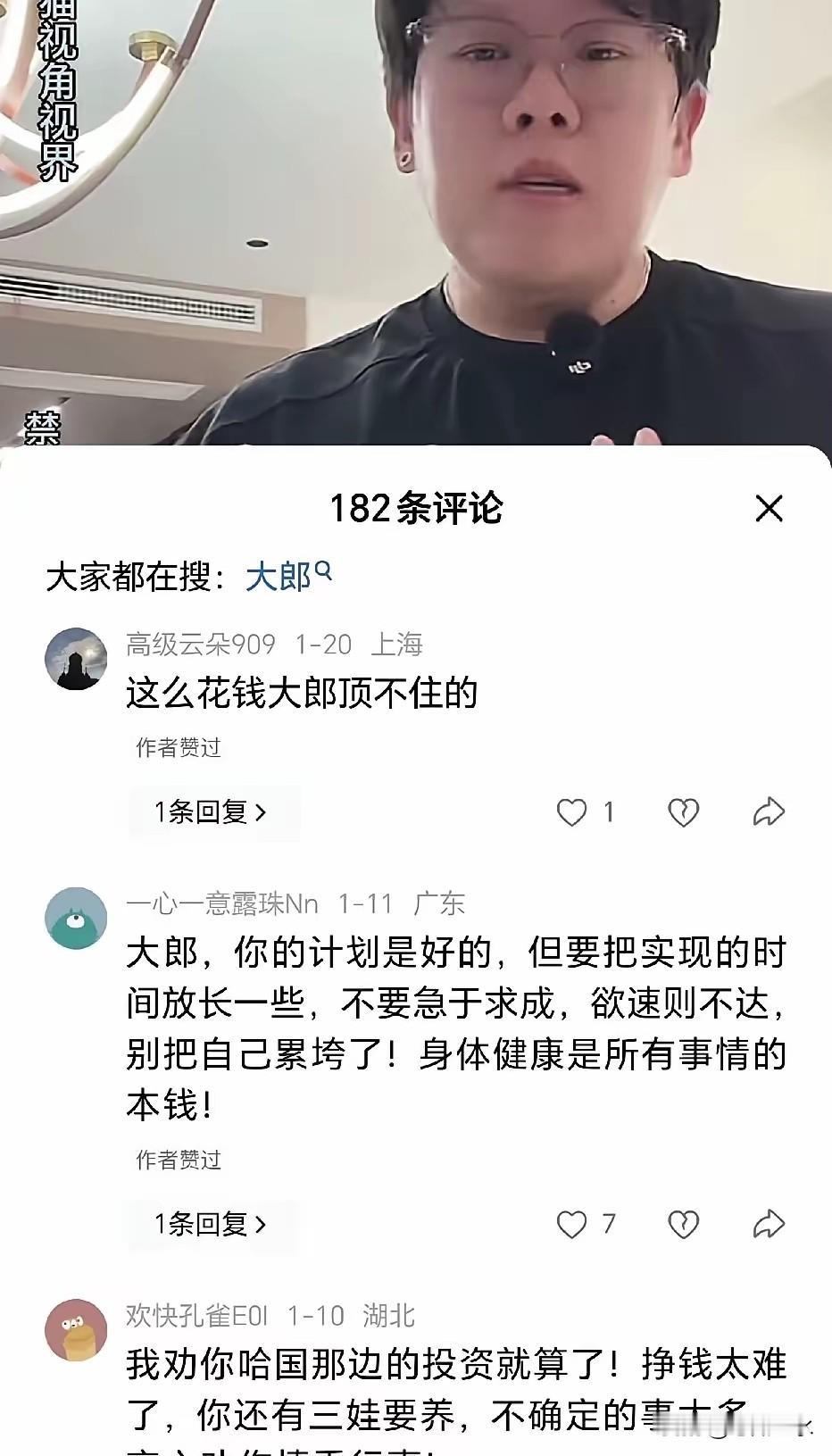 大郎自揭现金流压力,海外中医馆高投入引争议 十几口人一起出门,账单能有多密集?新房刚入住,丈母娘一家在国内一路玩,喜气拉满,现金流吃紧。大郎情绪不稳,直说花费太大。 和娜塔莎搬家后,住宿吃喝机票购物,全按天烧钱。一行十几口人,餐桌一摆就是成本。不管主业还是副业,他都得加把劲赚钱。内容账号上,投入不手软。 更大的支出在海外建中医馆。不是盖个房子就了事,他们要做标志性建筑,成当地打卡di一,吸引拍婚纱照,为国争光。不只是针灸推拿抓药。费神,回报未必高。 外界有人质疑哭穷,也有人看他并不缺钱。我的判断,更像现金流压力而非表演。建议先把运营模型跑通,做轻量试点,再扩张。 影响看两点,后续客流能不能稳定,成本能不能压住。若转化顺畅,压力缓解;否则高投入会变长期负担。下一步,控制接待规模,项目节奏稳一稳。