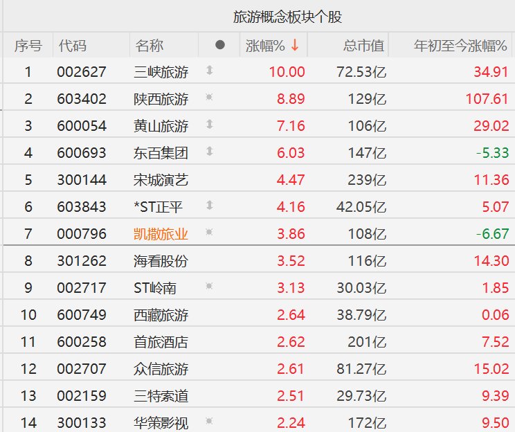 格隆汇2月5日|A股市场旅游股走强,其中,三峡旅游涨停,陕西旅游涨超8%,黄山旅游涨超7%,东百集团涨6%,宋城演艺涨超4%,凯撒旅业、海看股份涨超3%。消息面上,众信旅游的数据显示,2026年春节假期国内旅游市场热度持续上涨,计划出游人数较去年同期激增300%,市场呈现“量价齐升”的态势。