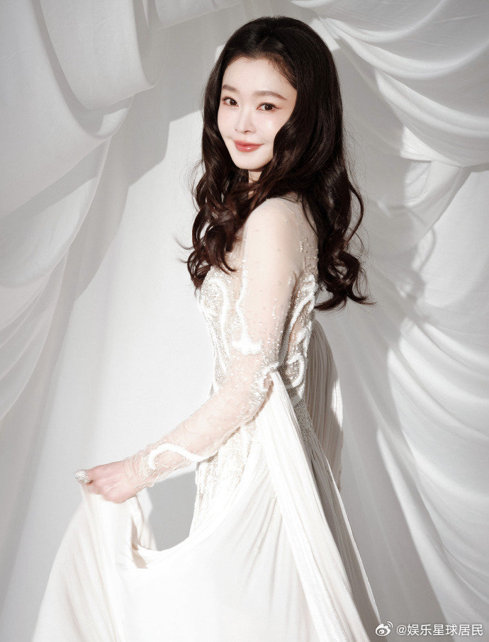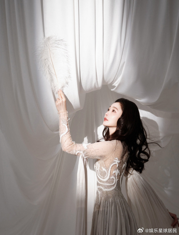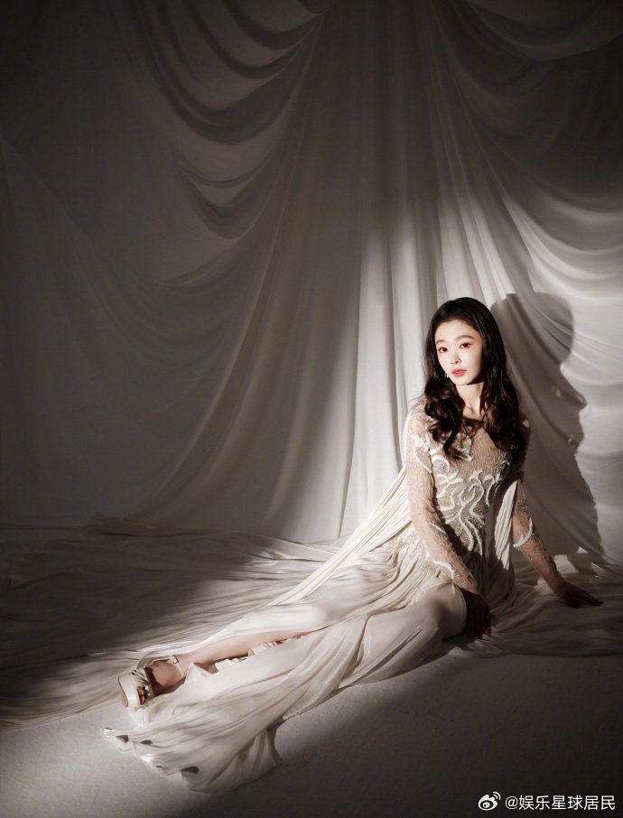宋轶白裙羽毛头纱 羽毛有了悬停的方向,白裙晕开冰晶涟漪,每一处堆叠都折射出梦幻,