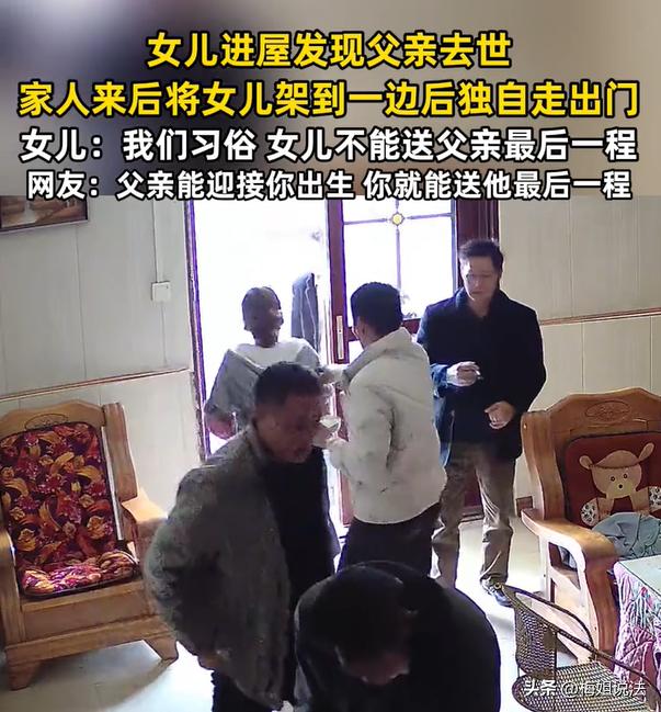 广西,一女子父亲病重,一直都是作为女儿的她近身服侍。这一天上午,女儿照常走进屋,想要看看父亲的情况,但是没想到父亲已经失去了呼吸,安详的离开了人世。女子瞬间就痛哭不已,在父亲一旁大哭相送。没想到亲戚们进来之后,直接就把女子给架了出去,因为按照他们这边的习俗,女儿不适合送父亲最后一程。 观象视频2月4日报道了这则新闻。 据报道称,这件事爆发之后,网友们纷纷站队女子,认为她作为女儿,肯定是有资格送父亲走的,毕竟是父亲迎接她来到人世,她也可以送父亲最后一程。 广西一位女子的父亲身患重病,插着氧气管,对抗着病魔,人生已经走到了最后阶段。 自从生病之后,父亲一直卧病在床,病榻前面,一直都是女儿在照顾自己,忙里忙外、端茶送水。 但是作为女儿来说,她非常乐意帮助服侍父亲。虽然是嫁出去的女儿,她选择搬回家来居住,成天就守候在父亲身旁,生怕稍有怠慢。 随着时间的过去,父亲的情况愈发不好,女儿照顾父亲的时候,时常多有不舍,生怕父亲终将会离自己而去。 所以,女子几乎就是寸步不离,一来,是想要争分夺秒的多陪陪自己的父亲;二来,真的是生怕多有不测。 但是,分别的时刻还是来临。 事发这一天,女子刚刚出门给自己的父亲将衣服给晒出去,等到女子回来查看父亲情况的时候,女子突然发现,她的父亲好像不行了。 女子在父亲身旁轻轻呼唤了一阵子,但是父亲并没有答复。再仔细一看,父亲已经没有呼吸。可能在刚刚某个时刻,父亲已经安详的离开了人世。 看到从小疼爱自己的父亲最终还是离自己而去,女子大声痛哭、内心非常悲伤。但是当女子准备好好哭丧、哭送自己父亲最后一程的时候,却被赶过来的亲戚们给架了出去。 亲戚们一边架着女子,一边将她赶出了大门,让女子到门外去哭。 家人表示:没办法,这就是家乡的习俗,嫁出去的女儿是不可以送别父亲最后一程的,因为这个行为对于娘家来说,有一定的影响。 至于存在哪些不好的影响,亲人只是表示,这就是乡俗,具体也说不上来。 而女子被架出去之后,只能跪在房间门外大哭,却不能近身相送。或许,对于女儿来说,这也许是一种遗憾吧。 再看看屋内的亲人们,几乎都是男性,只有男性才能在逝者身旁忙碌,帮助料理后事。 事件爆发之后,网友们则纷纷帮助女子说情:当女儿出生的时候,就是父亲迎接女儿的到来;如今父亲离世,女儿也有资格送他最后一程。 因为,这就是血缘的牵绊,根本无法割舍。 作为女儿,送别父亲,这就是有资格的,倒也不至于将女儿直接给架出门外,都不给近身哭丧的机会。 本案释法: 女儿面对父亲的离世想要大声哭丧,但是亲戚表示,根据习俗来看,女儿没有资格哭丧就把女子给架了出去。如何评价这样的行为呢? 根据《民典法》规定,在一些丧葬实践中,女儿哭丧是情感表达,也属于仪式的重要组成部分。情感与礼俗,都是双重亲情表达,如果强行阻止,会切断女儿跟父亲最后的情感联结。 正如本案例,地处广西,可能这边的风俗习惯在,女儿不适宜送父亲最后一程,但是架走女儿的做法,有些过于偏激,背后逻辑也站不住脚。 有些地方还存在保守的想法,如“嫁出去的女儿就是外人”,认为女儿就不再属于娘家血脉,但是在法律上来说,女儿就是具有法律效应的身份,任何习俗都无法割断。 父亲养育女儿一场,女儿想要尽到最后的心意,这份情意本身比任何形式都要重要。毕竟,真正的孝道,是尊重每一个想要告别的孩子。 “让告别成为选择,而不是强制”,所以说,让女儿放声痛哭,那是她对父爱的回应,不应该被任何人打断。 综合而言,这种以“习俗”演化而来的名义,其实剥夺了女儿哭丧的权力,本质上还是有所干涉,有些违背了真实的孝道精神,或许应该得到审视和改正,而不是到了最后,还让女儿感到委屈。 对于此,您作何看法呢,不妨评论区里一起来讨论吧!