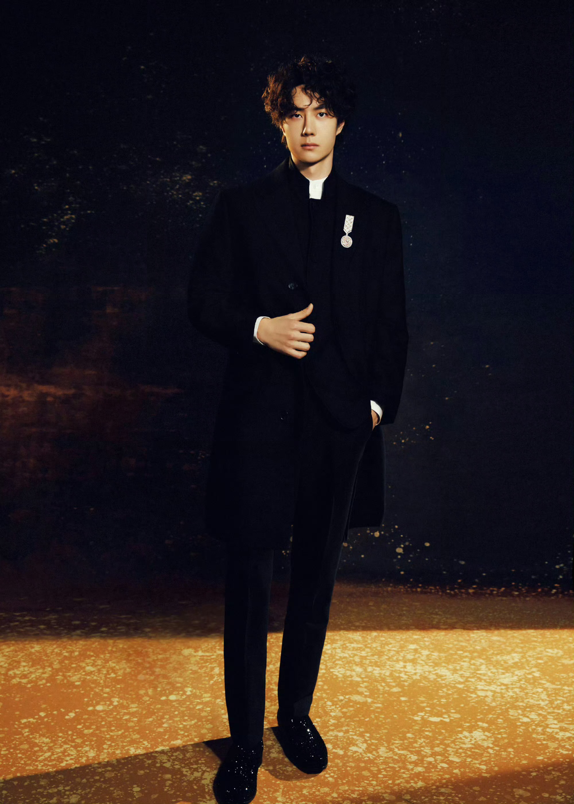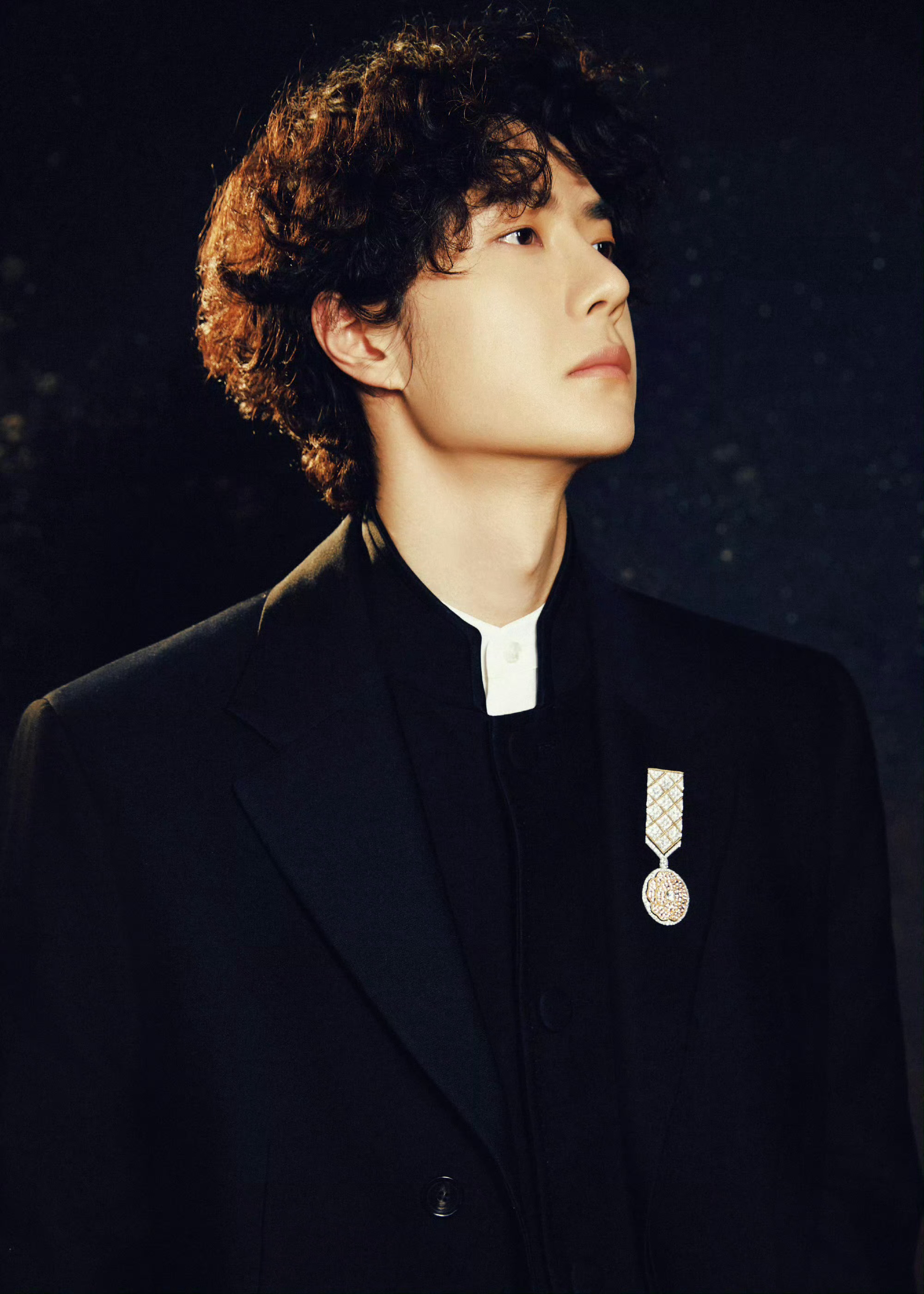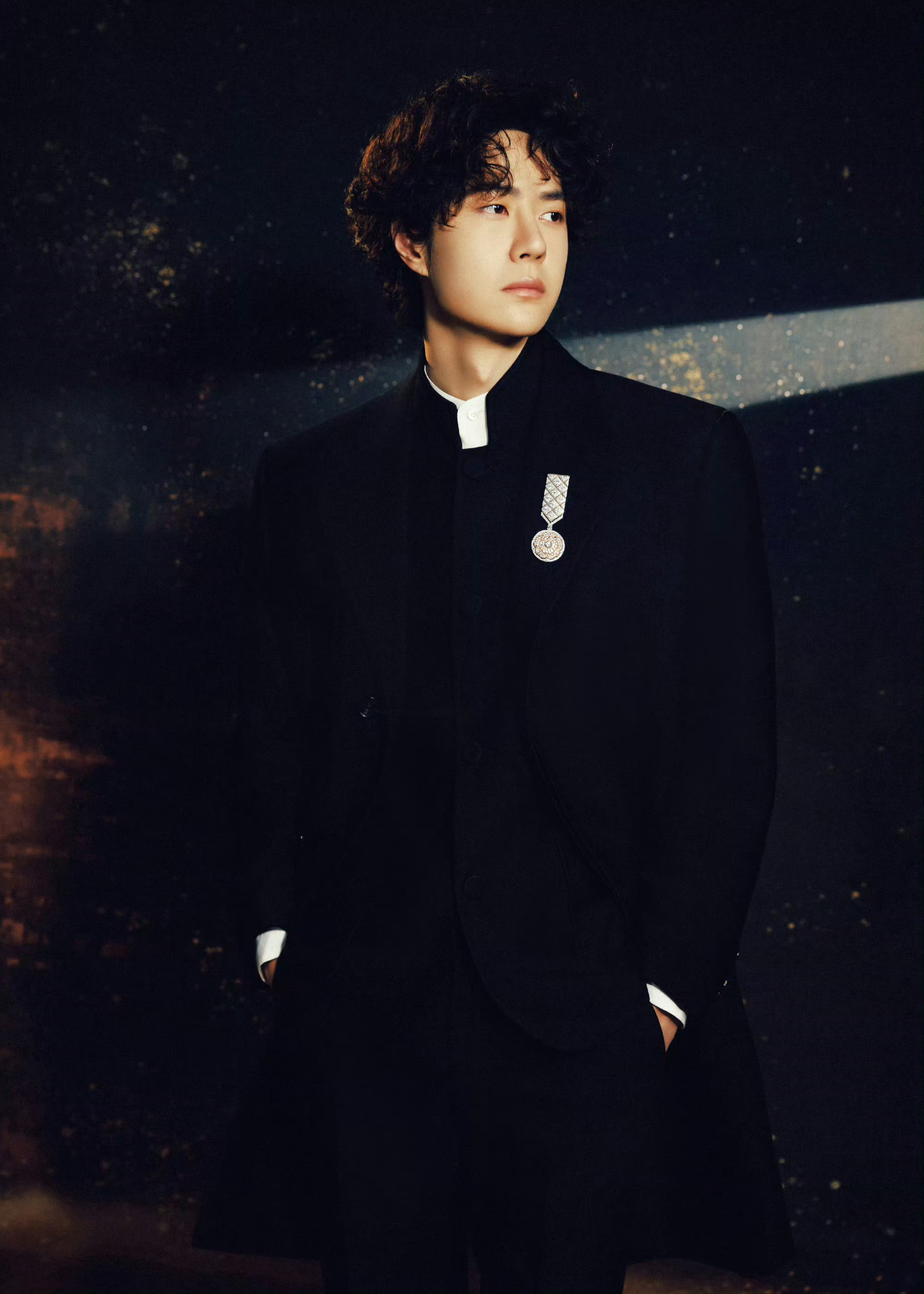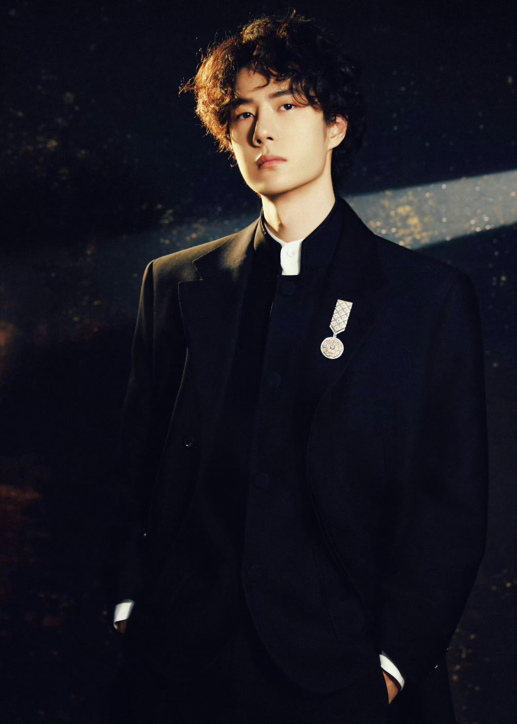 今日,出席微博之夜的王一博|造型,身穿黑色立领套装礼服,脚穿闪亮鞋履,佩戴CHANEL臻品珠宝LE PARIS RUSSE DE CHANEL系列的MEDAILLE MADEMOISELLE CAMELIA胸针,勋章款设计,点缀香奈儿经典山茶花。很高贵典雅的一身造型。微博之夜出图微博之夜红毯造型米拉服饰解析