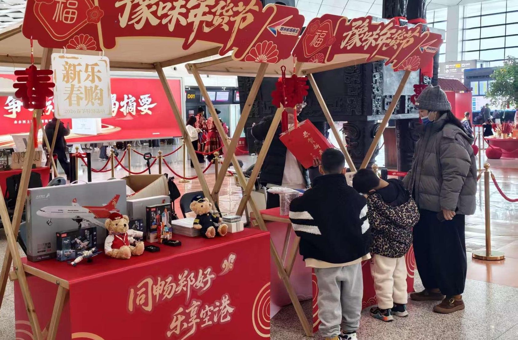 今年的春运,为打造民航春运文化精品,激发春节消费活力,郑州机场自2月5日起正式启动“同畅郑好乐享空港”迎新春主题活动。聚焦便捷出行、年俗文化、家庭团圆、购物出行等核心需求,通过“航空+文旅”深度融合的模式,在航站楼内构建了一系列文化、消费与体验交织的沉浸式场景,让现代化交通枢纽转型为一个充满温度与特色的空港会客厅。