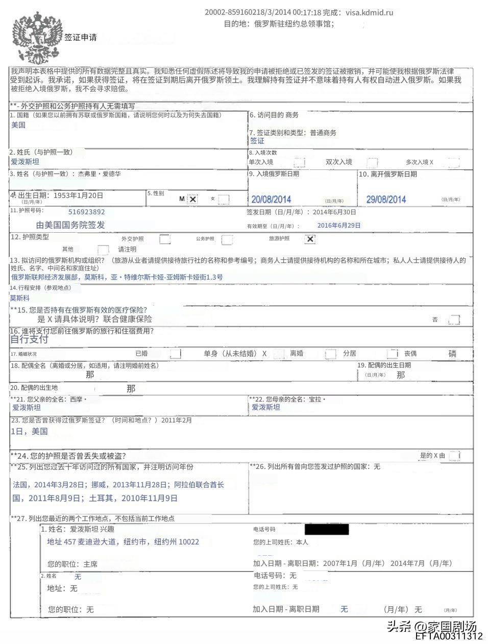 护照记录显示,爱泼斯坦在2002年至2018年间,多次获得俄罗斯签证。 他最后