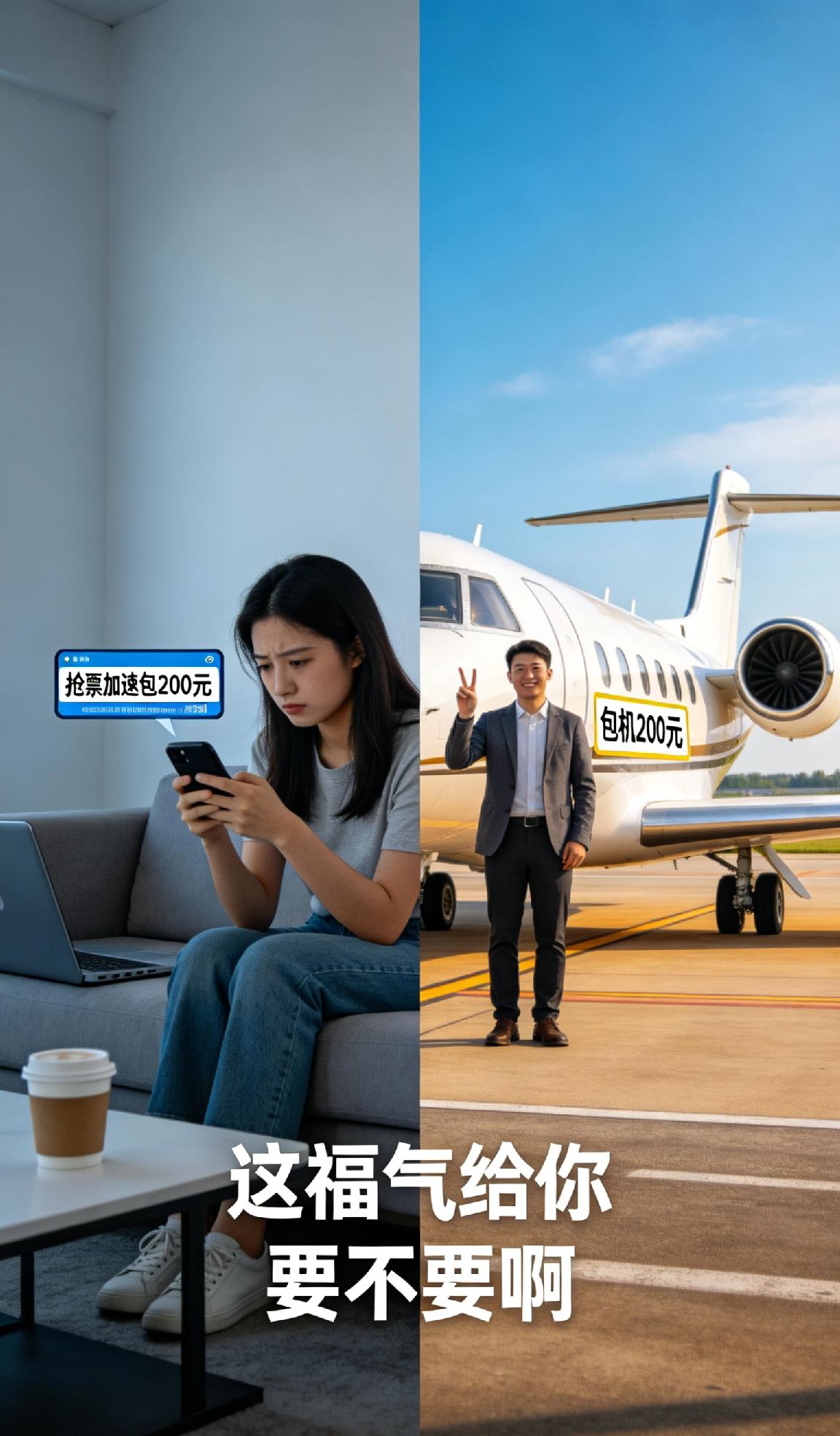 女子称花200元独享一架客机飞成都我花200块买抢票加速包都没抢到票,人家花200块直接包机,这福气给你要不要啊.jpg