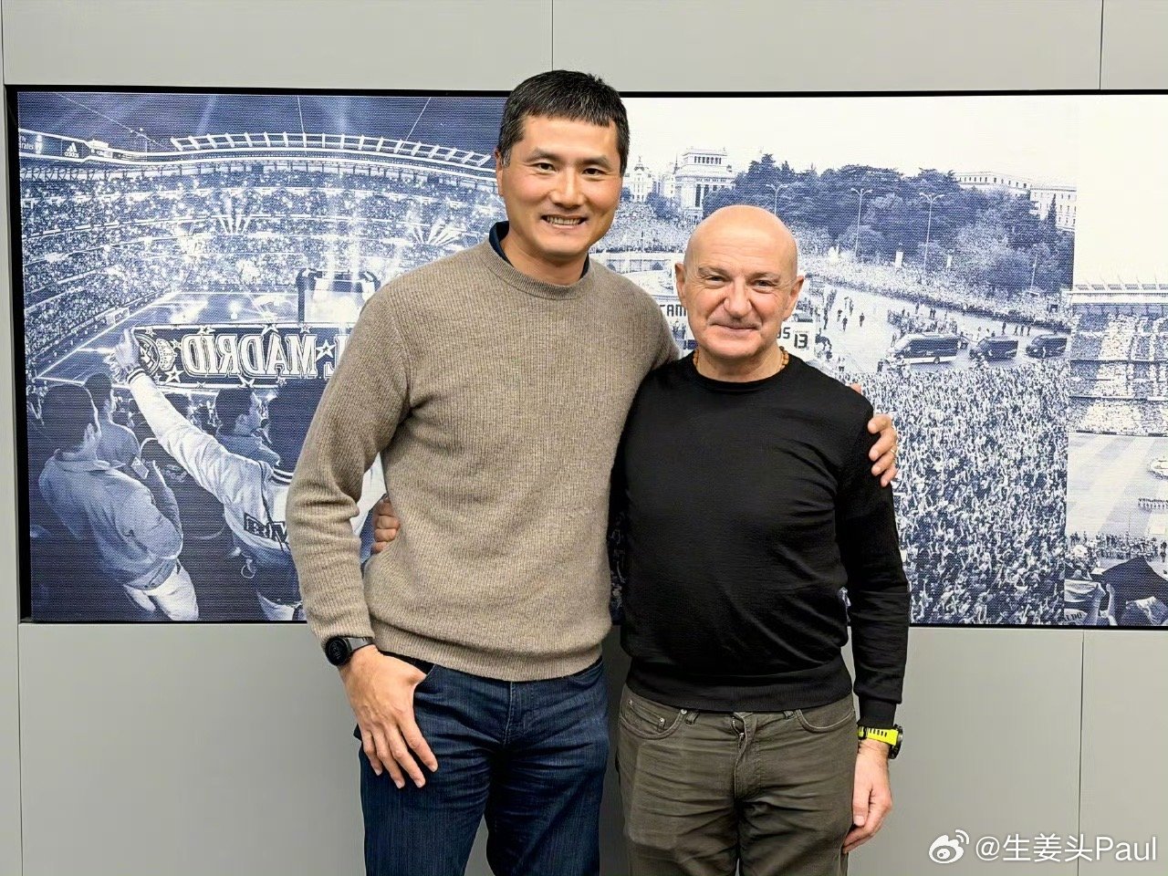 主席弗洛伦蒂诺·佩雷斯先生与邵佳一教练亲切会面并互赠球衣。邵佳一先生参观了皇马体育城,观摩了青年队训练,并与体能教练平图斯、医疗总监尼科·米希奇博士进行了专业交流。