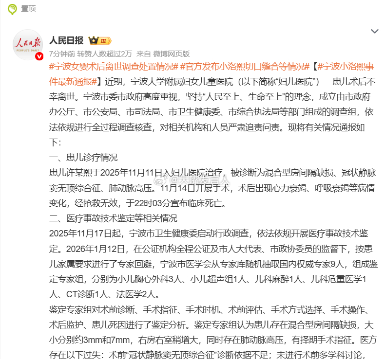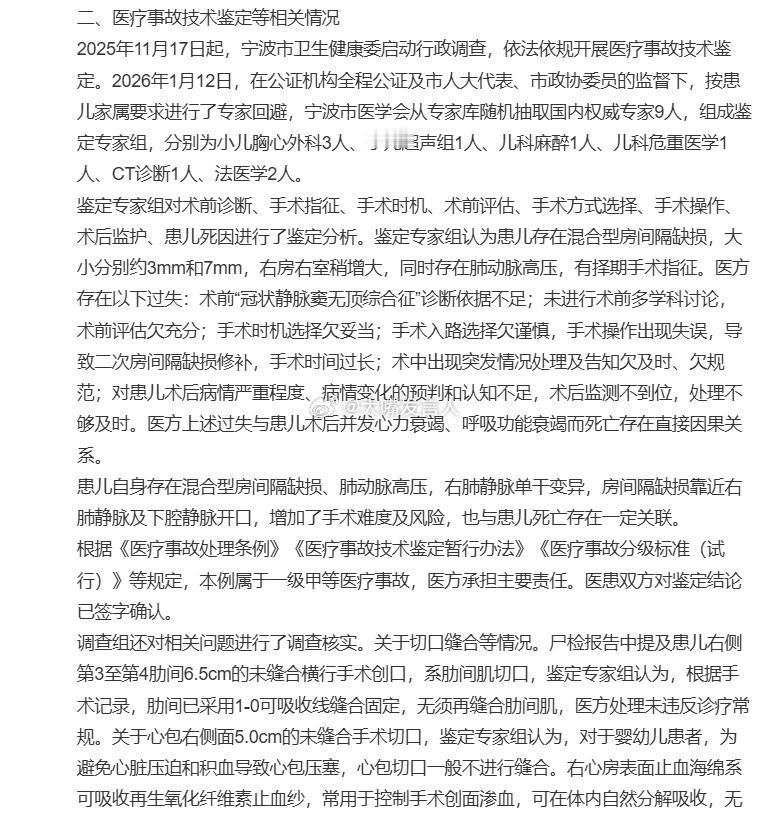 小洛熙事件为一级甲等医疗事故,热点观点,宁波患儿术后离世调查结果