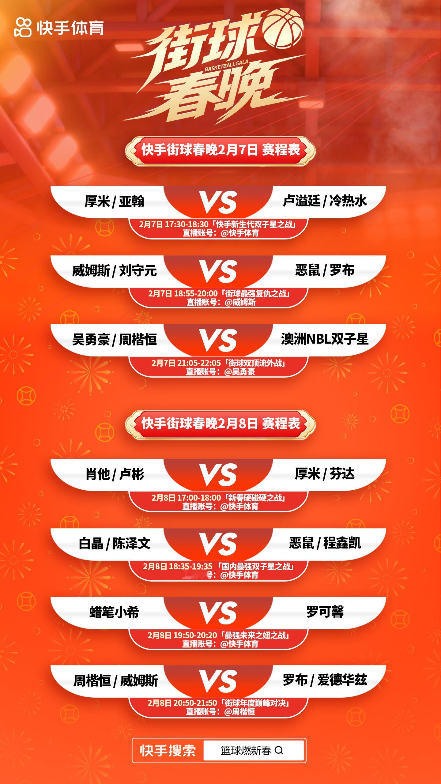 球圈街球春晚将于2.7-2.8在江苏盐城上演,周楷恒、吴勇豪、威姆斯、罗布、恶鼠、程鑫凯等街球顶流齐聚,上演多场重磅对决。