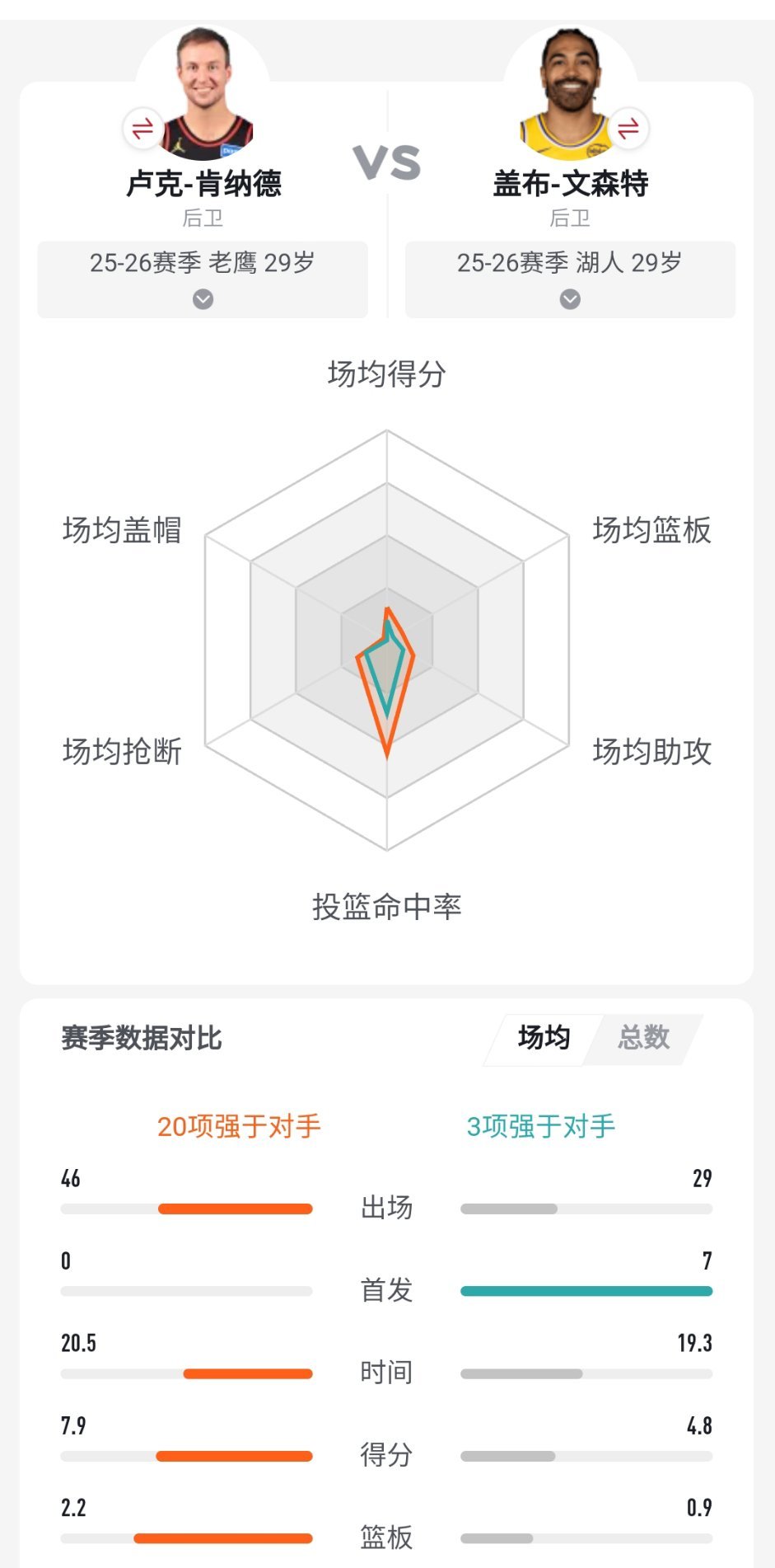 湖人送走文森特,从老鹰得到肯纳德!!!本赛季文森特和肯纳德23项能力对比:肯纳德20项胜出!