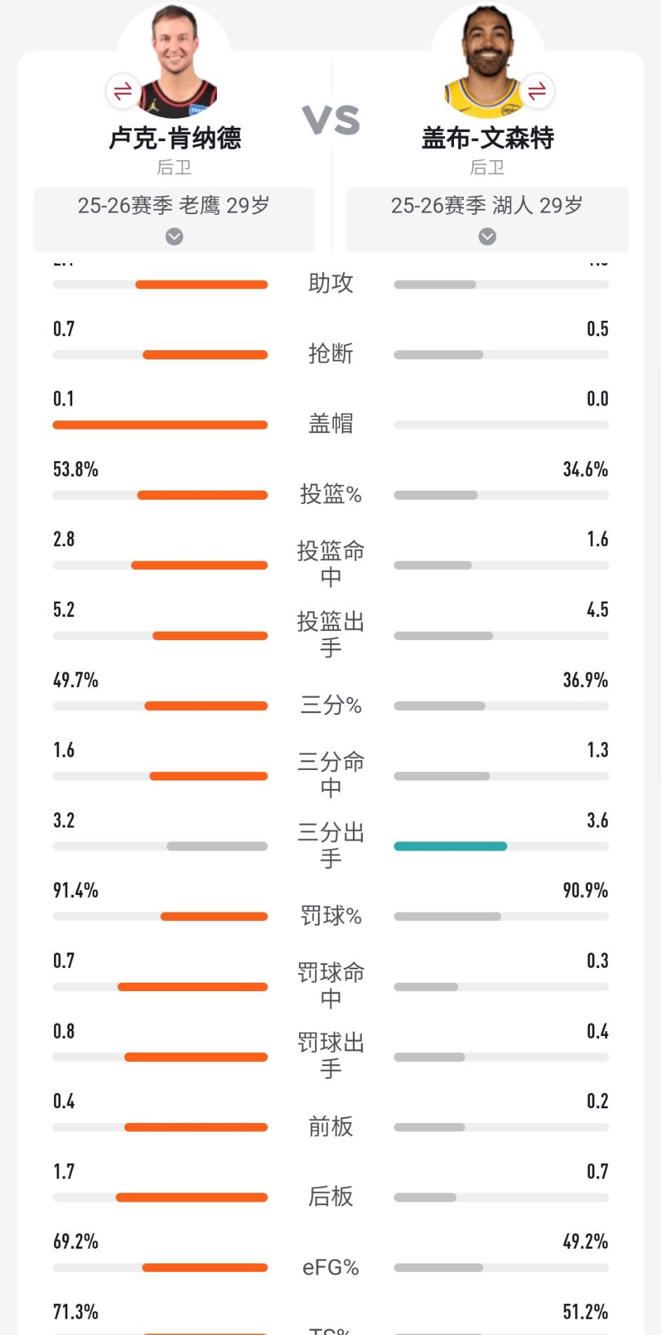 湖人送走文森特,从老鹰得到肯纳德!!!本赛季文森特和肯纳德23项能力对比:肯纳德