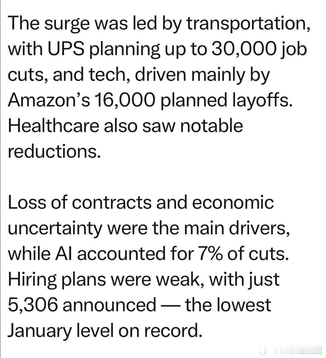美国雇主,一月宣布裁员近十一万,比去年一月翻倍,是2009年一月以来最多