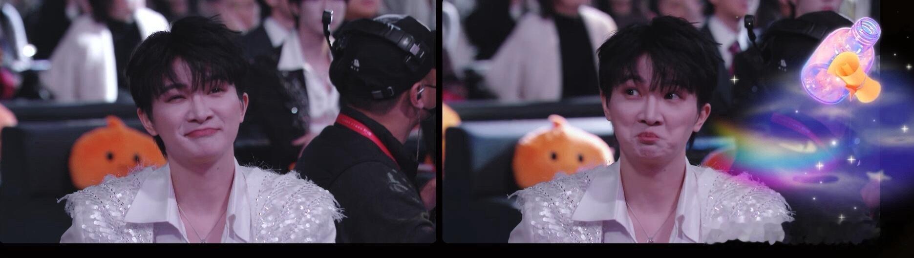 周深紧急表情管理 从“沉浸式吃瓜”到“职业性假笑”,周深完成了一次教科书级别的表情滑坡。尤其发现镜头后,那强行抿嘴却控制不住上扬的嘴角,完美诠释了什么叫“笑容转移到了我的脸上”。