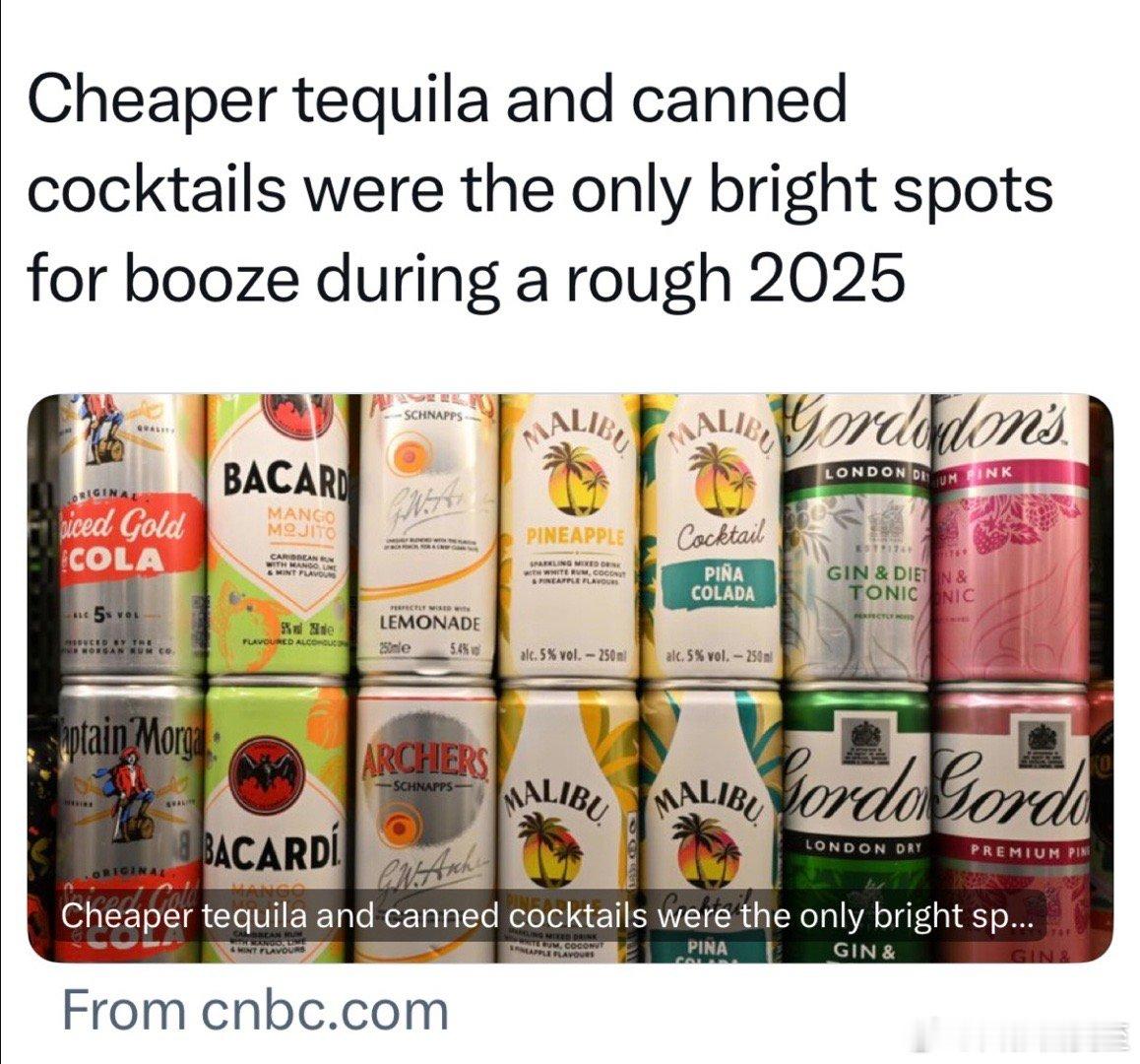 2025年,美国通胀3%的情况下,烈酒类销售额📉2.2%贵的酒卖得很差,最畅销