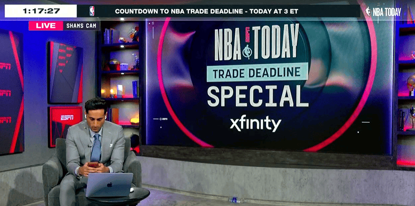 美媒分享动态:NBATODAY今日特别节目还剩1小时开播,ShamsCharania还在不停地刷手机和电脑。