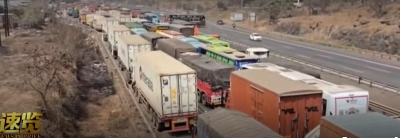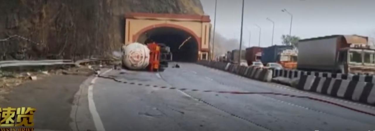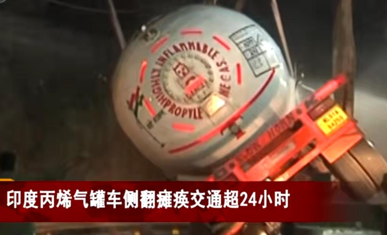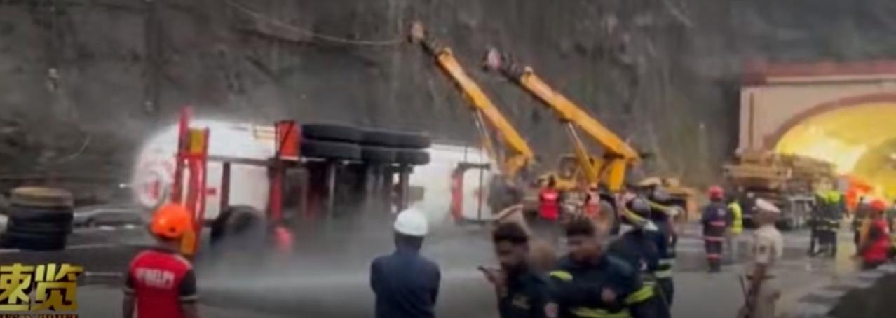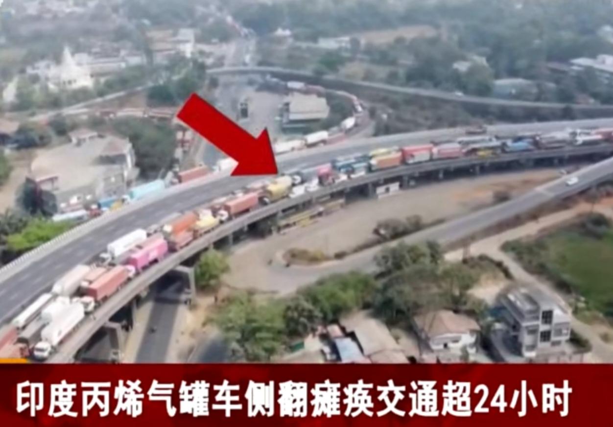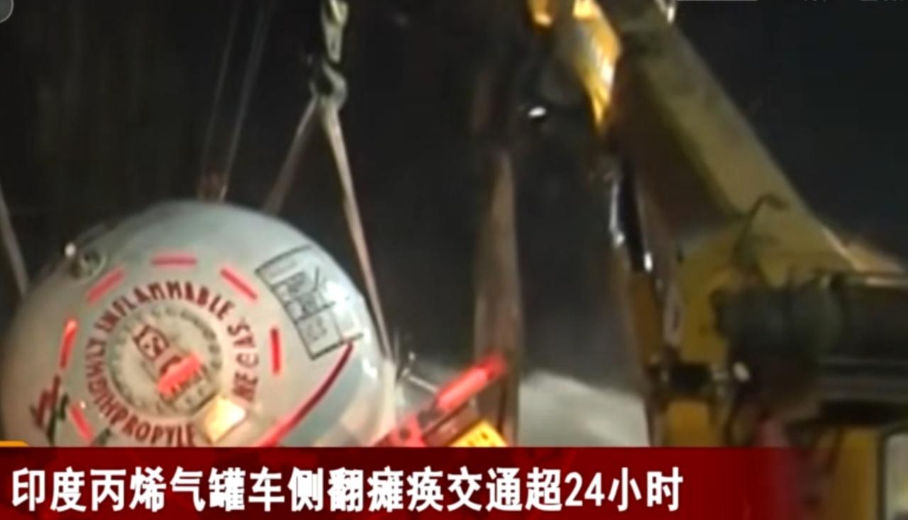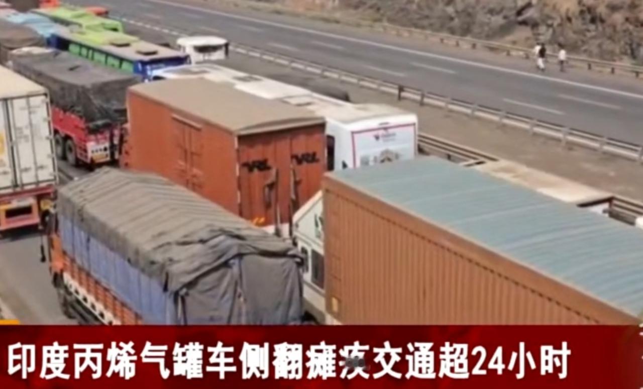 印度一辆载有丙烯的气罐车在隧道入口处侧翻,导致这条关键高速公路彻底瘫痪,拥堵已超24小时。现场可见绵延数公里的货车长龙,救援人员正用大型吊车处置泄漏罐体,当地交通陷入严重混乱,大量旅客和货运车辆被迫滞留。
