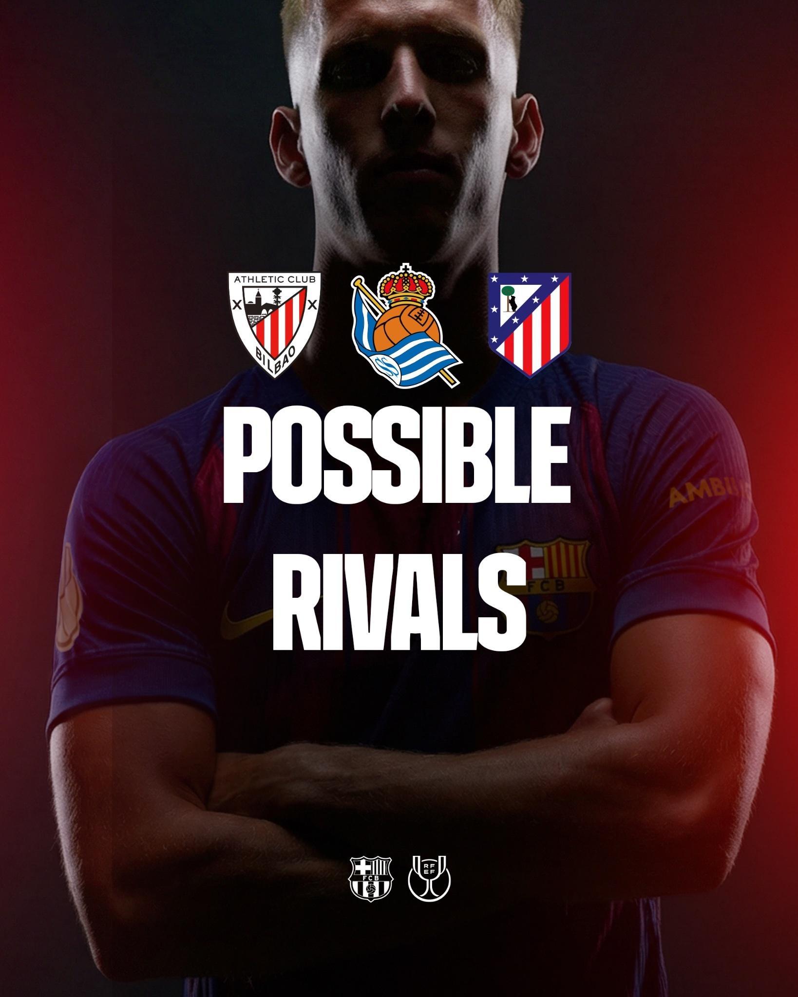 国王杯四强诞生,马竞以5-0贝蒂斯晋级半决赛,巴萨潜在对手:毕尔巴鄂竞技,皇家社会和马德里竞技。巴萨至死不渝红蓝魂
