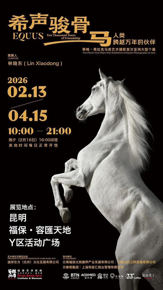 2026年2月13日,“‘希声骏骨•马——人类跨越万年的伙伴’,蒂姆•弗拉克马类艺术摄影首次亚洲大型个展”将在昆明福保·容匯天地Y区活动广场正式对公众开放。