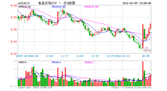2月5日,食品饮料ETF(515170)涨1.25%,成交额3.16亿元。当日份额减少1.97亿份,最新份额为101.75亿份,近20个交易日份额减少1950.00万份。最新资产净值计算值为57.80亿元。