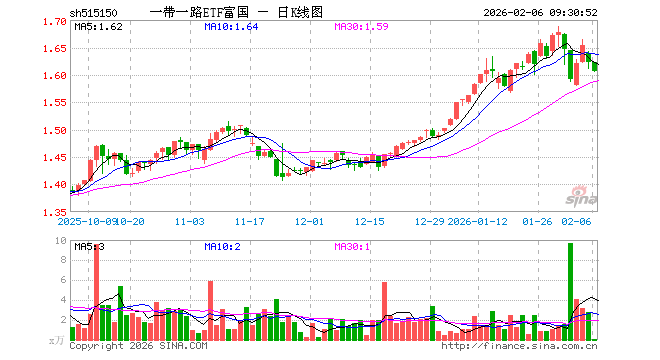 2月6日,一带一路ETF富国(515150)开盘跌0.06%,报1.622元。一带一路ETF富国(515150)重仓股方面,小商品城开盘跌0.52%,金风科技跌0.24%,中国铝业跌3.64%,烽火通信跌1.20%,东阿阿胶涨0.56%,南网能源跌1.15%,广东宏大跌1.03%,云铝股份跌1.78%,建设银行涨0.11%,中国联通跌0.41%。
