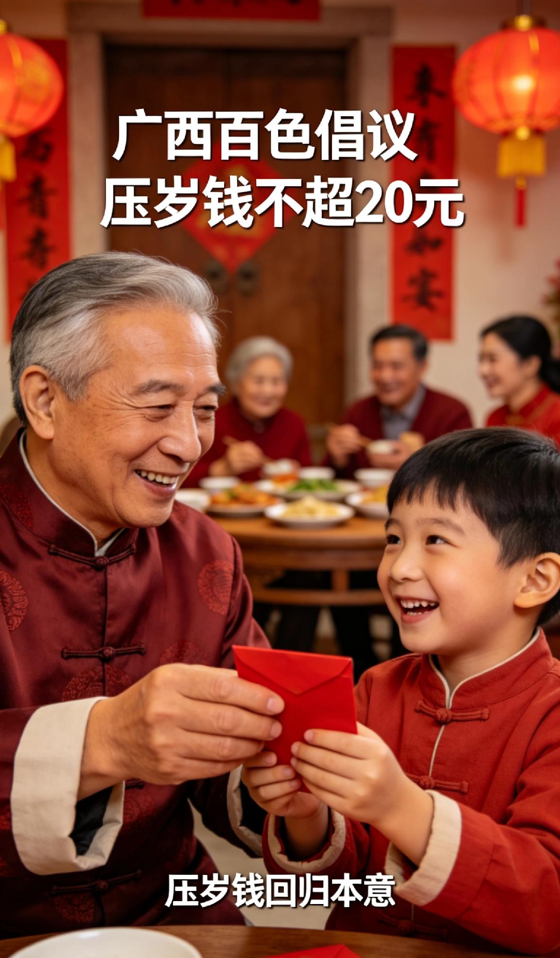 广西百色倡议过年压岁钱不超20元压岁钱的温度从不在数字大小,而在长辈裹在红纸里的疼爱与美好期许。广西百色倡议压岁钱不超20元,恰好让这份传统年俗褪去功利攀比的浮躁外衣,回归祝福的本真意义。没有金额的暗自较量,少了人情往来的经济负担,简简单单的小红包,装着最纯粹的牵挂与心意,让年味重回团圆温情,简单却绵长动人✨广西百色倡议过年压岁钱不超20元 压岁钱回归本意
