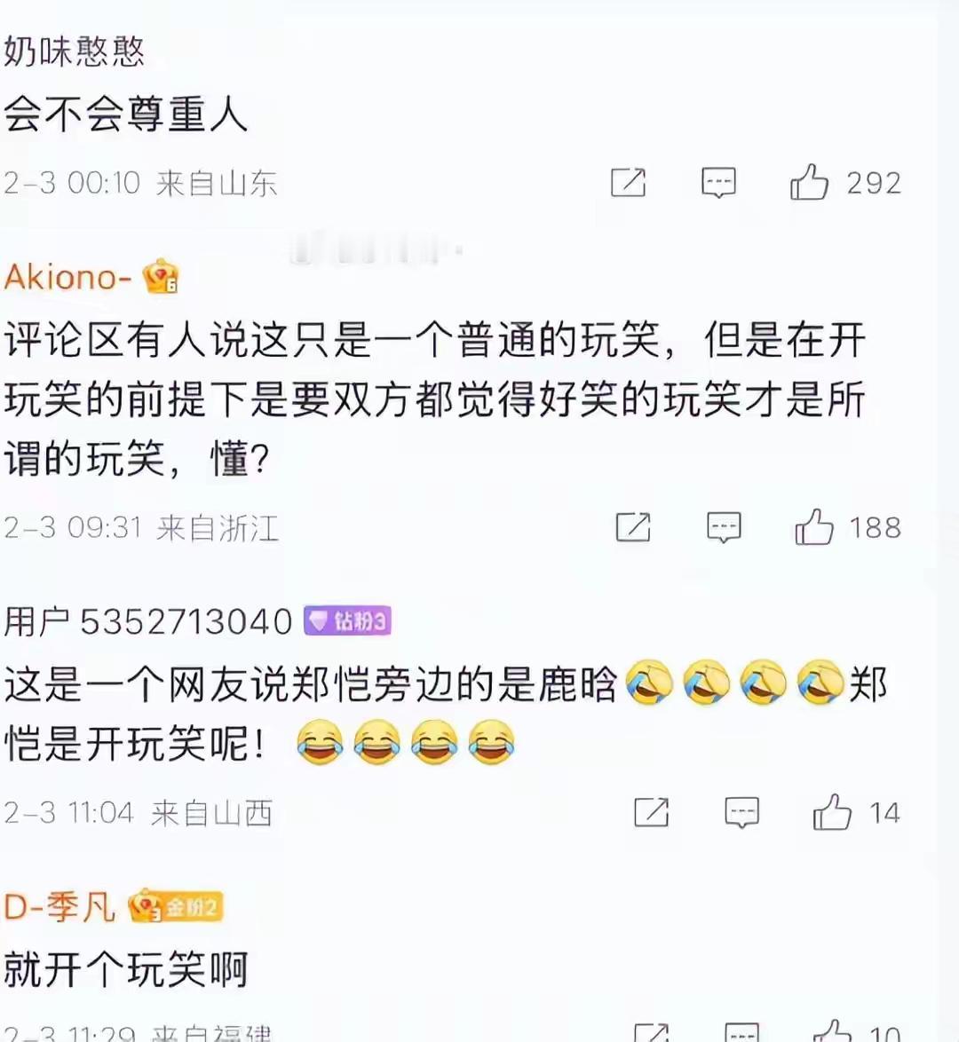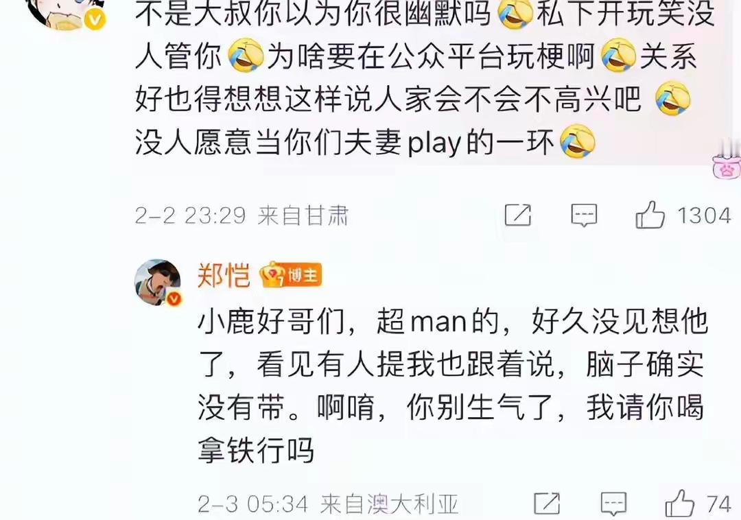 郑恺玩梗开鹿晗的玩笑翻车,没有掌握到边界感,起因是有网友问他视频里的女生是谁,他半开玩笑地回复“鹿晗”,本意是调侃鹿晗舞台造型偏柔美,却没想到引发了粉丝和路人的集体不满。 在如今的网络语境里,“娘化”标签对男艺人来说是极具争议的评价,尤其对靠舞台魅力吸粉的偶像而言更是如此。即便郑恺和鹿晗是多年好友,私下怎么玩梗都无伤大雅,但在公开平台这么说,就难免被扣上“不尊重人”的帽子。很快,评论区里满是“没分寸”“情商低”的指责,还有人直接点破:没人想成为别人夫妻玩梗的一环。 眼看舆论发酵,郑恺紧急发文道歉,用“小鹿好哥们,超man的”来圆场,还主动提出请鹿晗喝拿铁求和。这波操作看似化解了尴尬,却也暴露了公众人物在社交平台上的通病:把私下的玩笑直接搬到了台面上。 明星之间的互动向来是大众关注的焦点,一句无心的调侃,在放大镜下就可能被解读为恶意。郑恺这次翻车,本质上是没把握好“私人关系”和“公共表达”的边界。公众人物的言论自带传播效应,玩笑的尺度不仅关乎个人情商,更关乎对他人的基本尊重。 说到底,玩梗不是原罪,但不分场合的玩梗就是灾难。郑恺的道歉或许能平息一时的风波,却也给所有艺人提了个醒:在公众平台,你的每一句话都需要过过脑子。