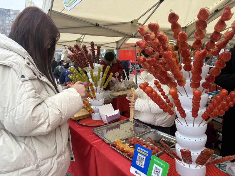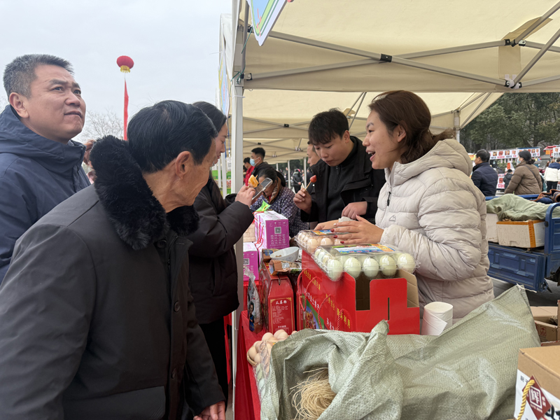 定远黑猪肉、定远老鹅、江巷水库生态鱼摊位前都挤满了市民。定远县农业发展集团有限公司副总经理盛兴告诉记者,“定远良才”是定远县重点扶持打造的区域农产品公用品牌,2025年通过品牌加持,累计带动全县农产品销售额突破了4亿元。本次“大集”,几乎集中整合了包括果蔬肉蛋茶奶等全县最好的名特优农产品,方便广大市民采购年货。