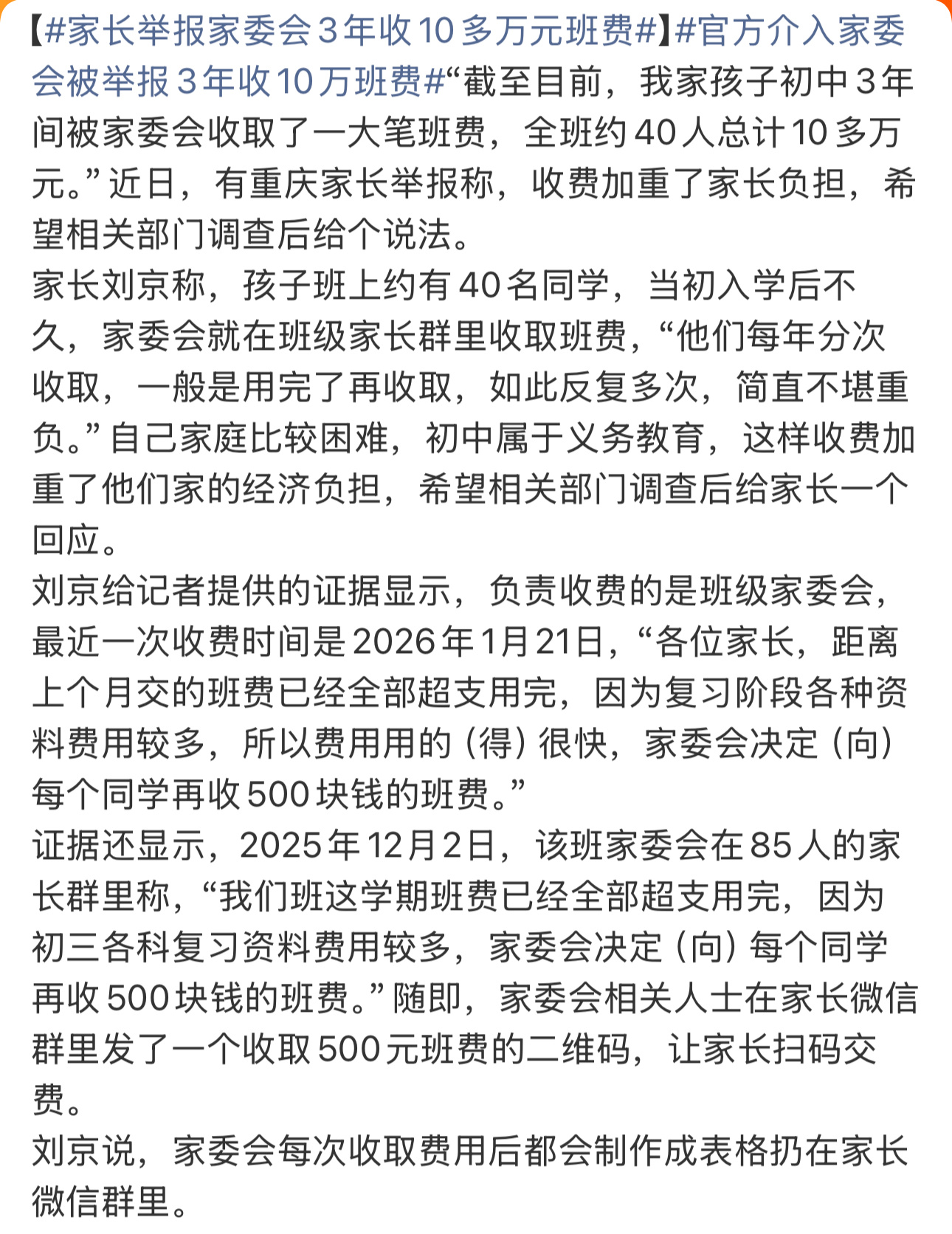 家长举报家委会3年收10多万元班费热点观点 家长举报家委会3年收10多万元班费