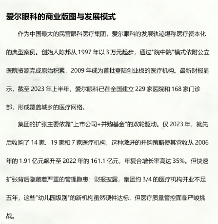 更值得关注的是其商业模式潜藏的伦理风险。通过"分级连锁"体系,爱尔眼科将高利润的屈光手术、白内障手术等业务下沉至三四线城市,但在医师培训、设备更新等方面投入不足。