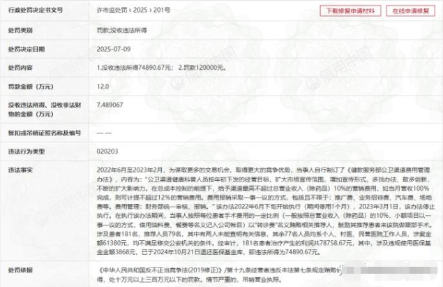 2025年5月份,子公司湛江爱尔奥理德眼科医院有限公司也因为“存在重复收费、过度检查、串换项目、将不属于医保支付范围的纳入医保基金结算等违法违规使用医保基金的行为”,被处以7.8万元的处罚。