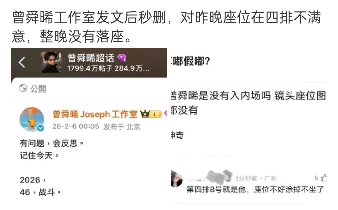 看评论说其实是大眼没有给他安排座位💺不清楚咋回事。这活动搞的乱糟糟的