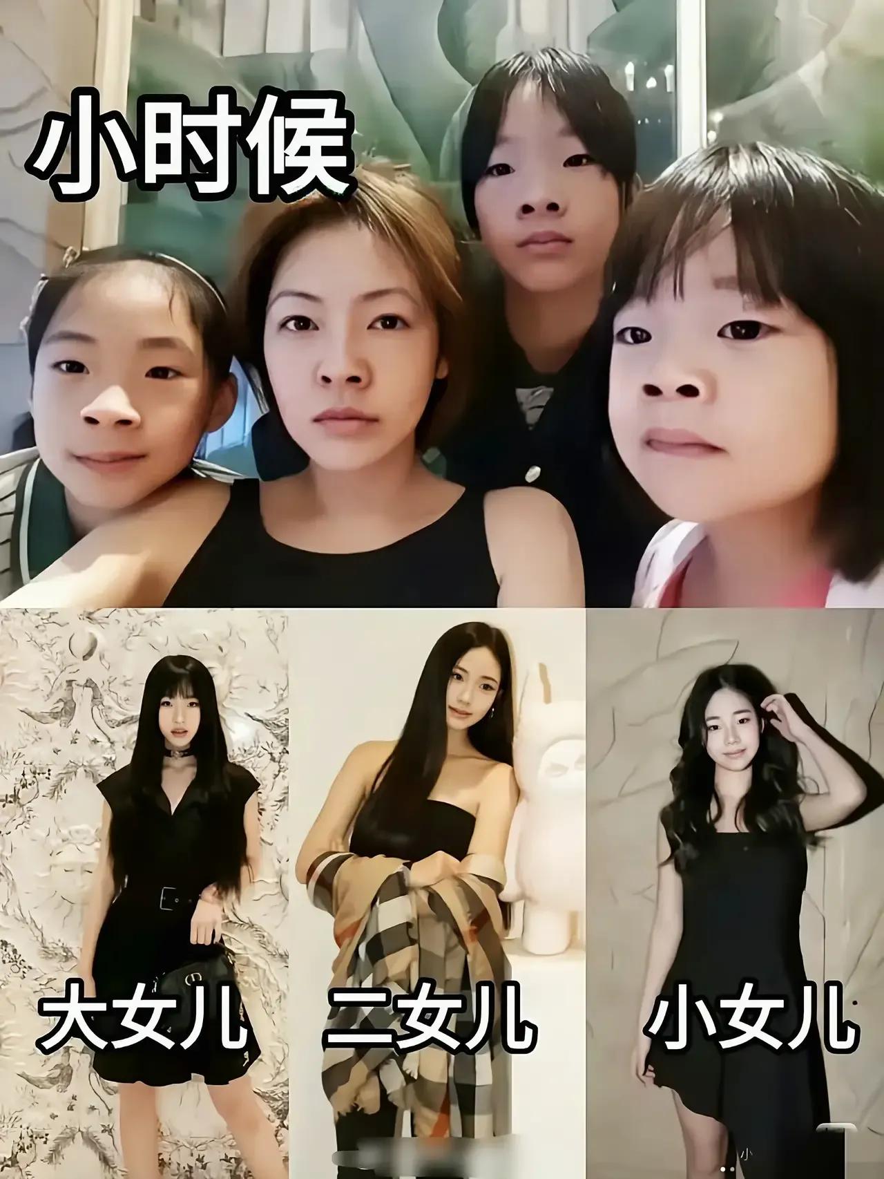 小S的三个女儿,印证了那句话,女大十八变,小时候都不漂亮,平平无奇,没有一点美人的痕迹,长大后竟然个个都是美如天仙,有着超模的身材。 还都有高级感,三个女儿都美过妈妈。