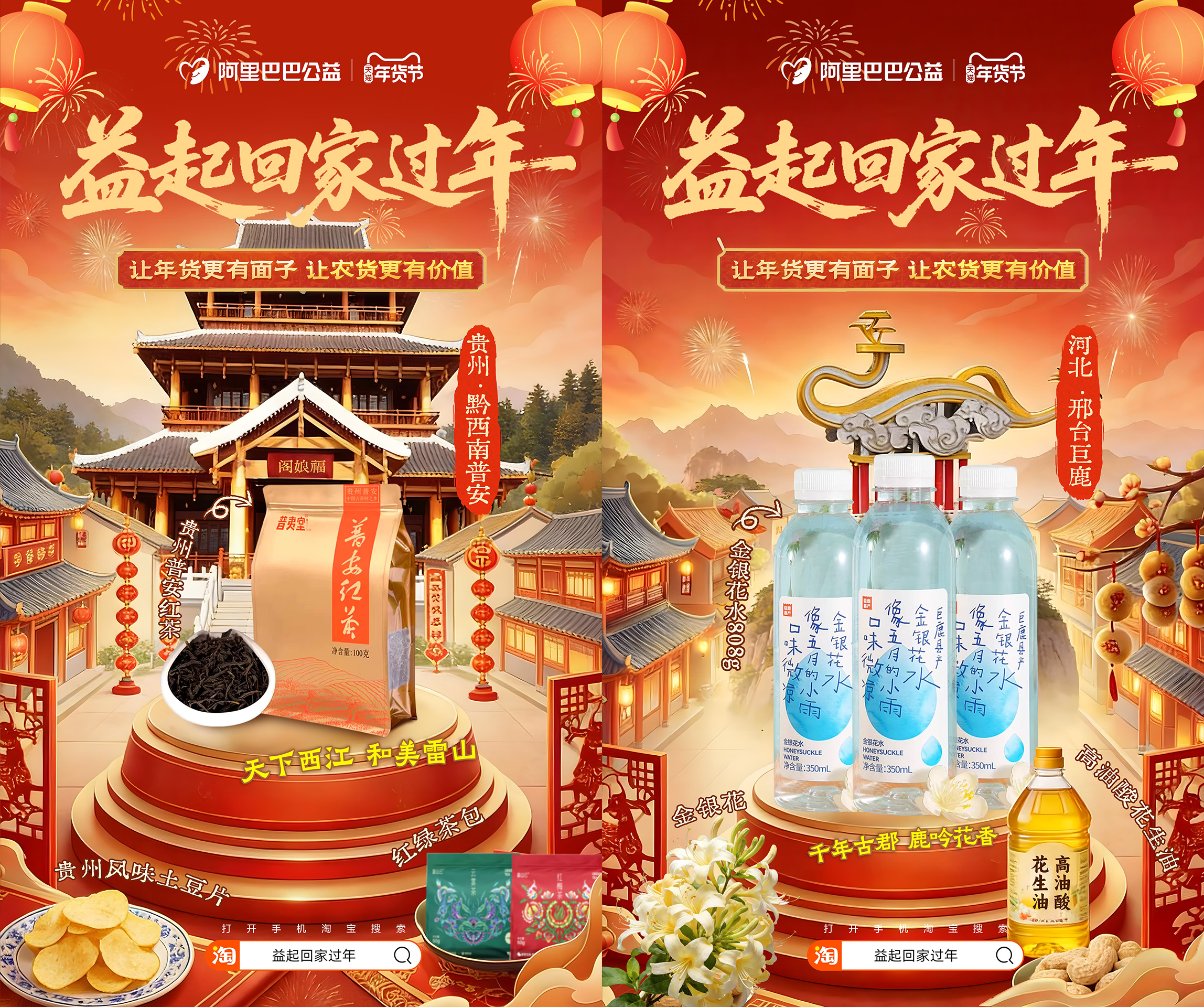 手机淘宝搜索[益起回家过年],都是来自乡村的特色年货。